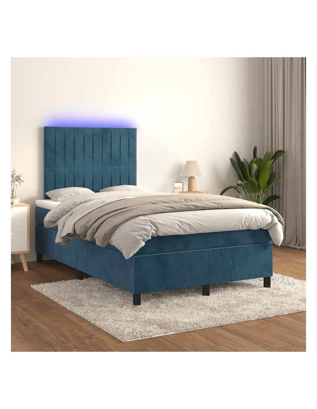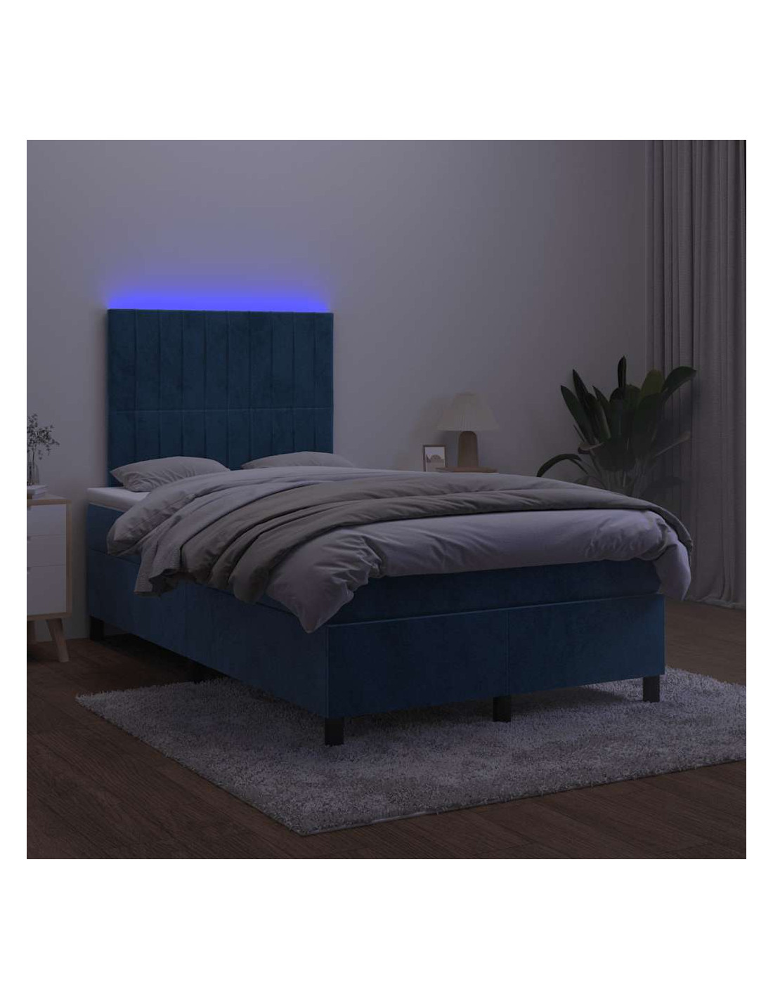 Letto a Molle Materasso e LED Blu Scuro 120x190 cm in Velluto
