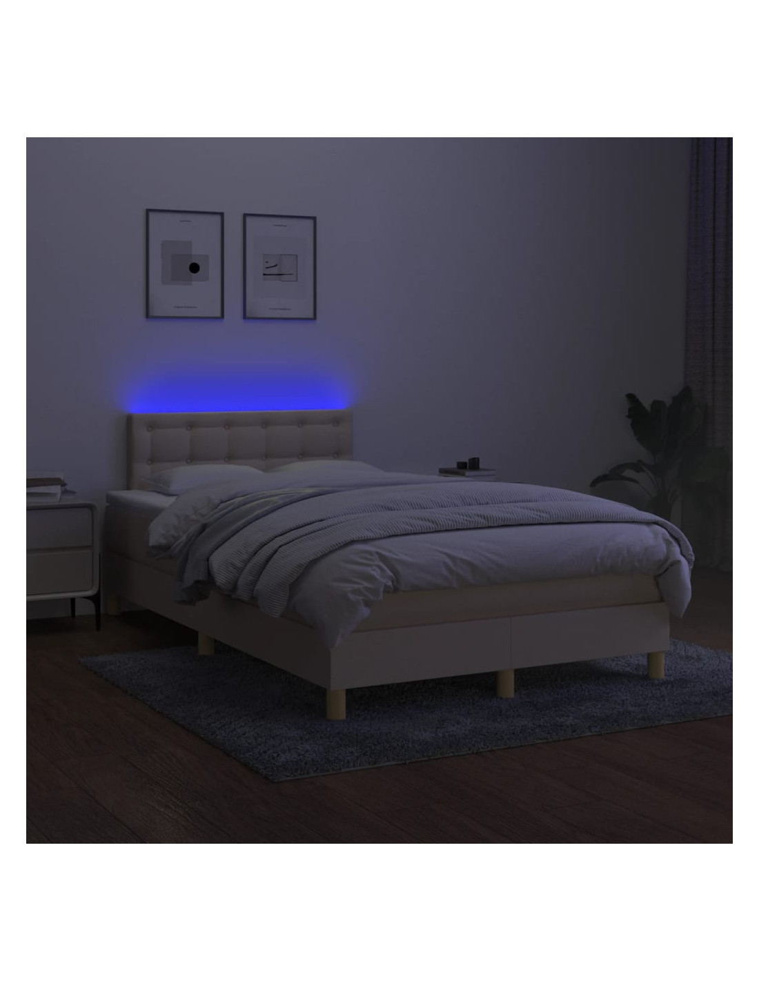 Letto a Molle con Materasso e LED Crema 120x190 cm in Tessuto