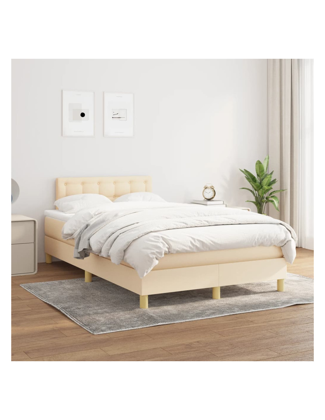 Giroletto a Molle con Materasso Crema 120x190 cm in Tessuto