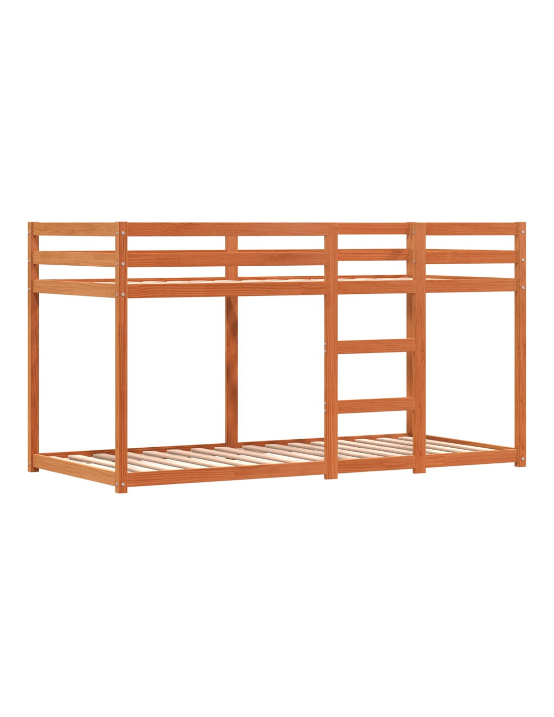 - Legno massello di pino: Questo letto a castello è realizzato in legno massello di pino per offrire stabilità e durata. Il legno di pino ha le venature dritte e i nodi conferiscono al materiale il suo caratteristico aspetto rustico.