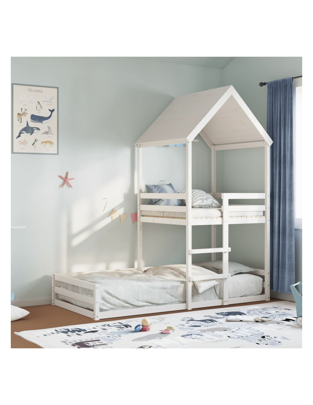Questo letto a castello in legno è elegante e multifunzionale, e rappresenta un complemento perfetto per qualsiasi stanza con uno spazio limitato.