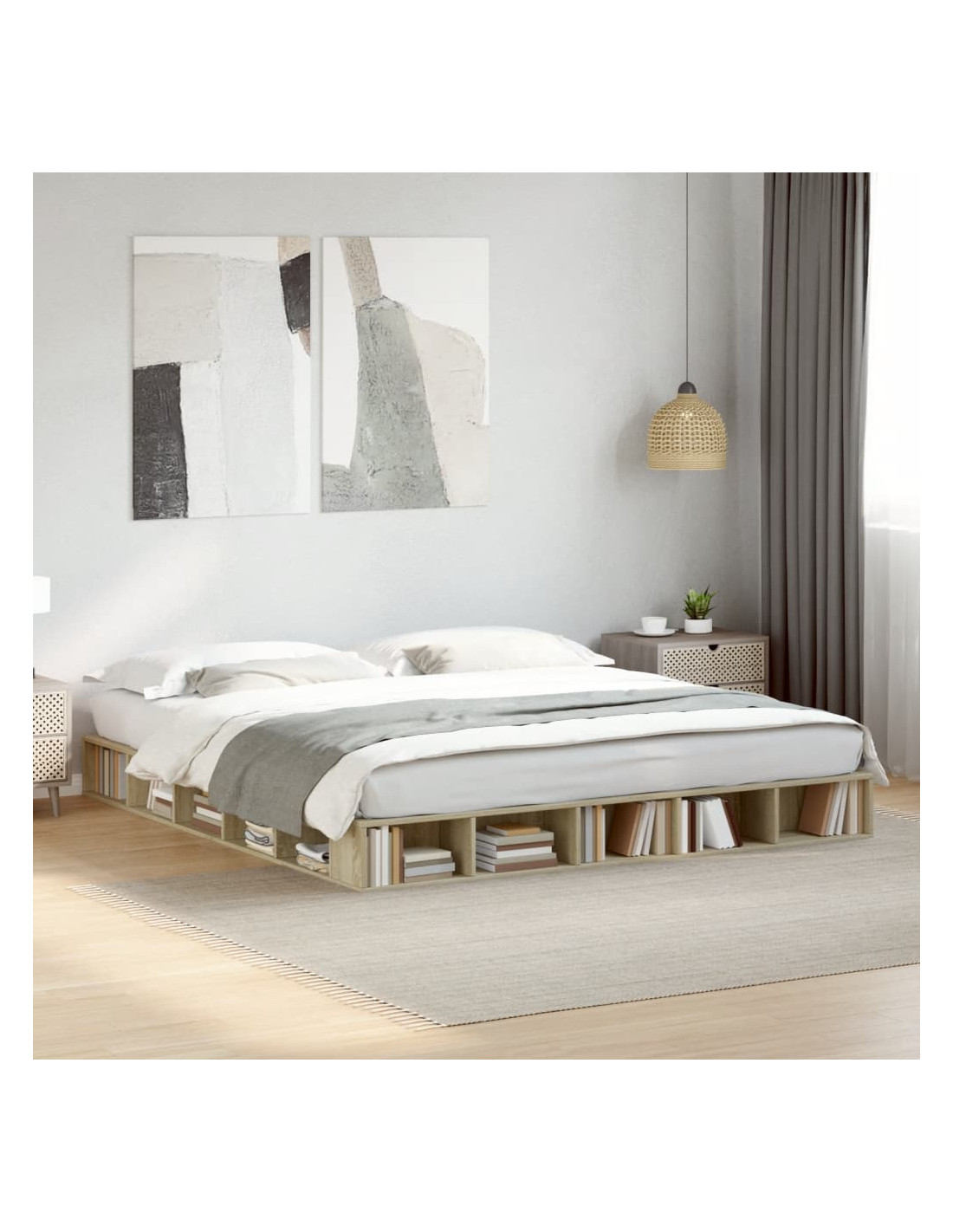 Ottieni una notte di sonno migliore e riposante con questo giroletto! È un'accogliente aggiunta a qualsiasi camera da letto. Materiale resistente: Il giroletto è realizzato in legno multistrato. Il legno multistrato è di una qualità eccezionale e presenta una superficie liscia. È caratterizzato da robustezza, stabilità e resistenza all'umidità.Doghe per un sostegno ottimale: Il giroletto è completo di doghe per offrire un sostegno e una traspirabilità essenziali al vostro materasso.Funzione di conservazione: Questo telaio per il letto è dotati di vani a giorni per riporre riviste, libri, giocattoli e altri piccoli oggetti in modo ordinato. Buono a sapersi:Il materasso non è incluso con questo letto. Offriamo una vasta scelta di materassi. Potete fare riferimento al nostro negozio per trovare un materasso da abbinare.