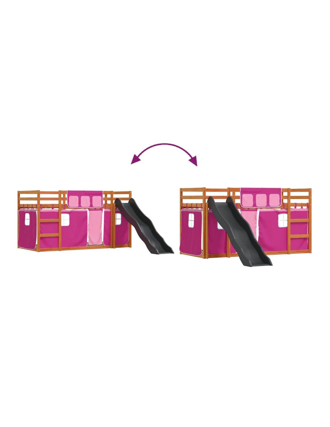 - Scaletta e scivolo comodi: Questo letto a castello doppio è dotato di un divertente scivolo che porta allegria e trasforma la loro stanza di un parco giochi al coperto. La combinazione della scaletta per arrampicarsi e dello scivolo rende il momento della nanna più vivace e interessante per i bambini.