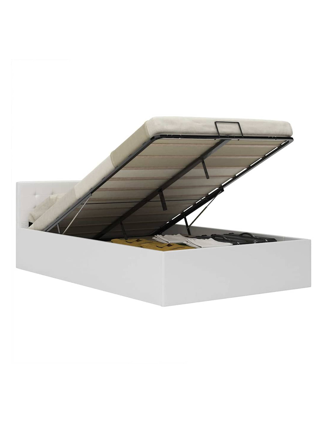 Questo giroletto trasforma lo spazio inutilizzato sotto il materasso in spazio di stoccaggio, con ampio spazio per riporre vestiti, lenzuola, coperte, ecc. Il meccanismo idraulico di sollevamento a gas rende il sollevamento del materasso estremamente facile. Il telaio a doghe rimarrà diritto una volta sollevato per lasciarvi entrambe le mani libere per prendere o mettere oggetti sotto il letto.