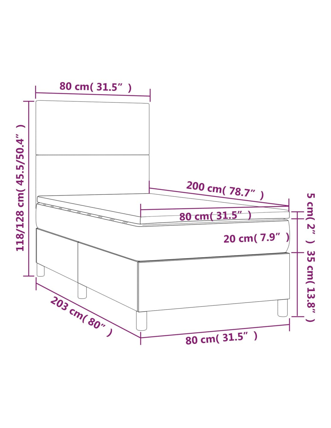 • Dimensioni: 80 x 200 x 20 cm (L x P x A)
