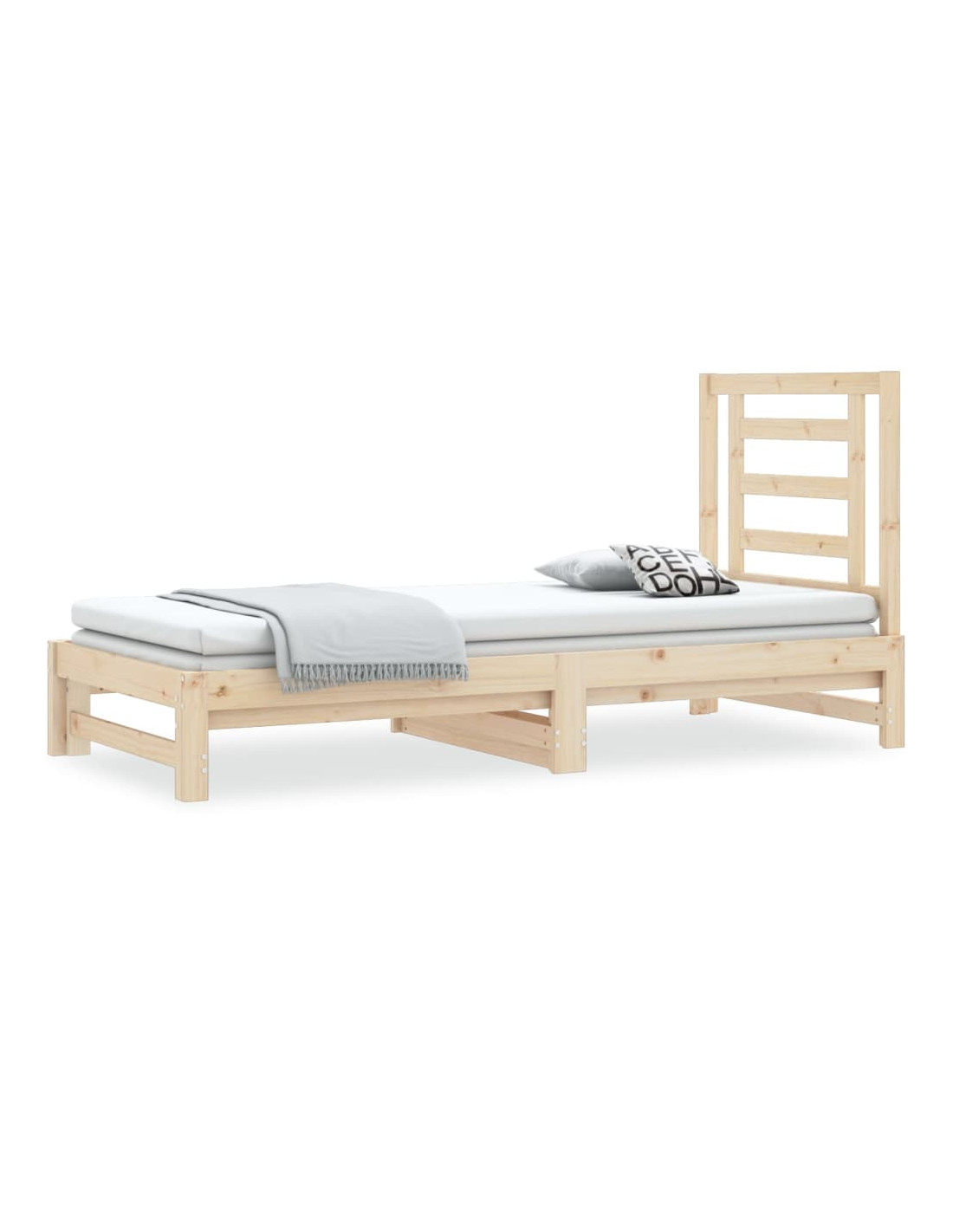 Questo versatile divano letto in legno può essere utilizzato come letto nella vostra camera da letto e si adatta perfettamente anche come divano nel soggiorno.