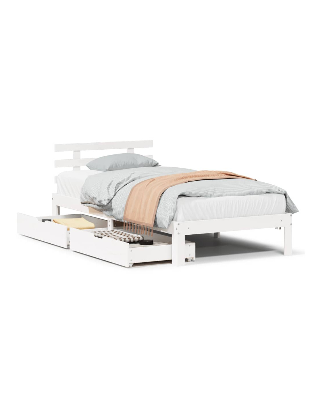 Giroletto con Cassetti Bianco 90x200 cm Legno Massello di Pino
