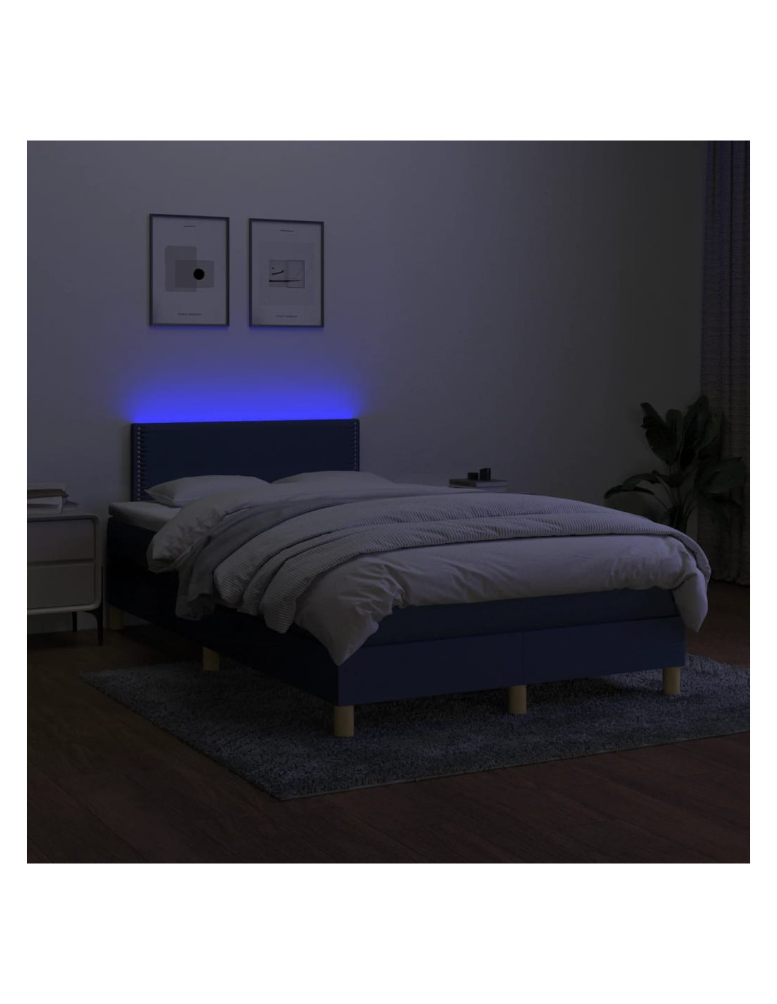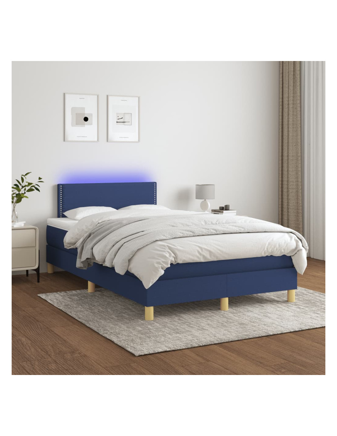 Letto a Molle con Materasso e LED Blu 120x190 cm in Tessuto
