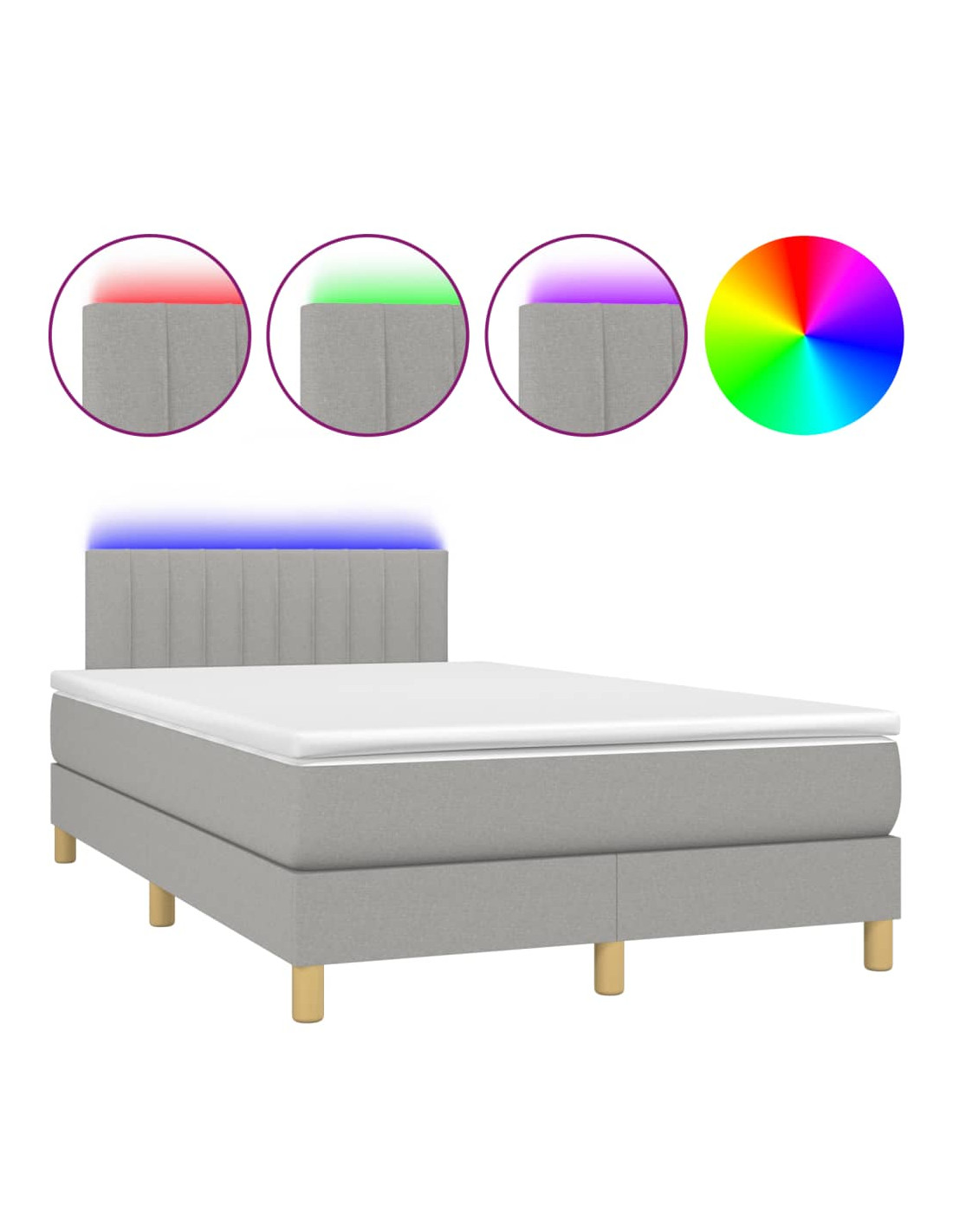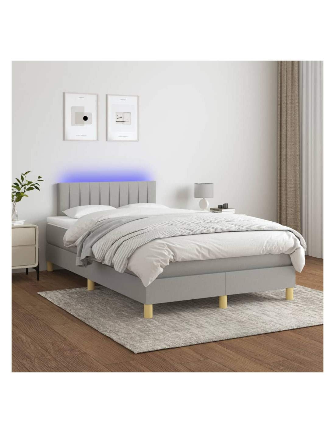 Letto a Molle Materasso e LED Grigio Chiaro 120x190 cm Tessuto