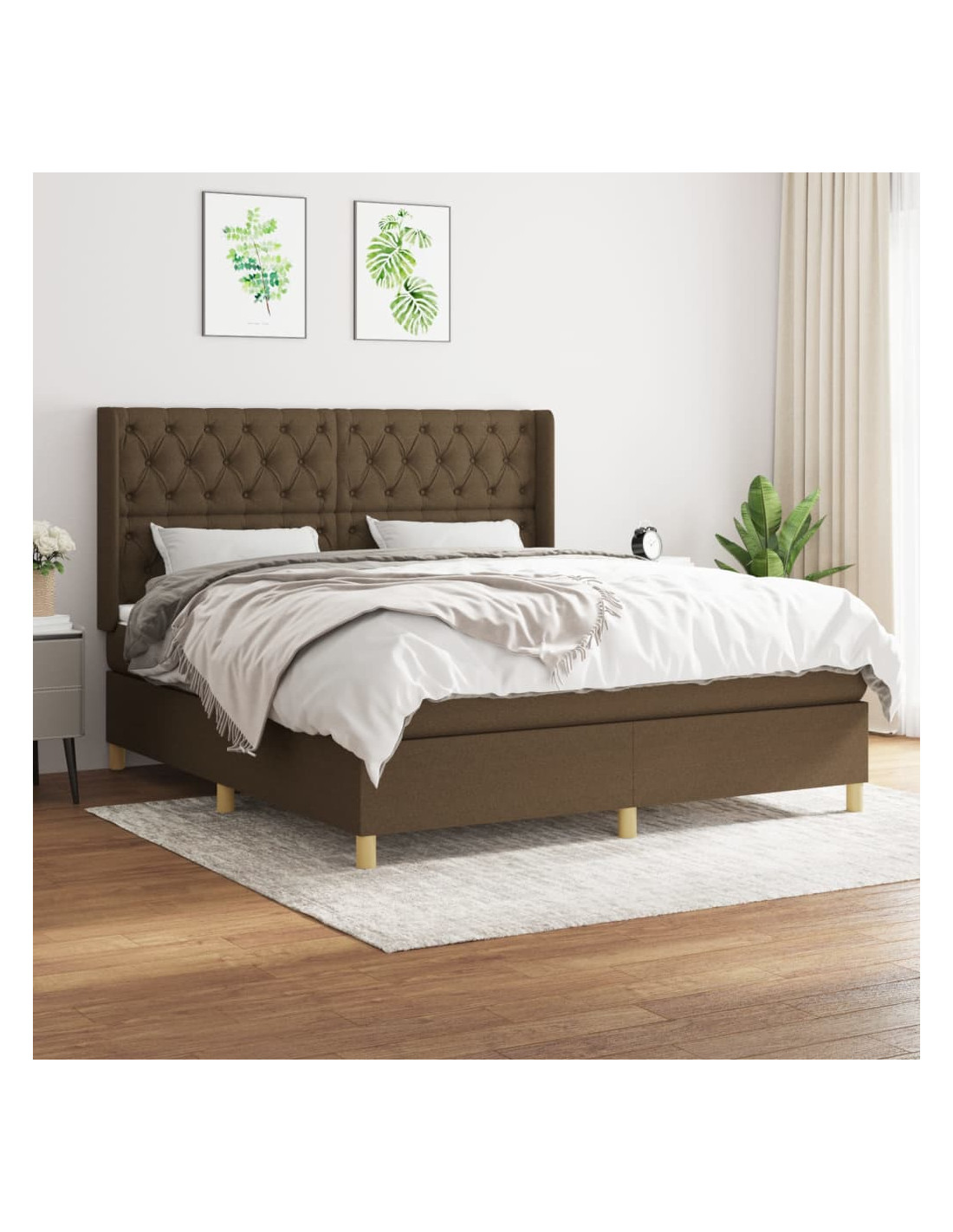 Giroletto a Molle con Materasso Marrone Scuro 160x200cm Tessuto