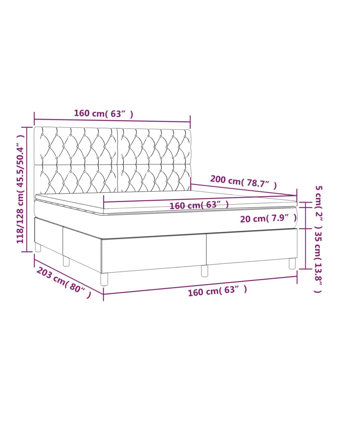 • Dimensioni: 160 x 200 x 20 cm (P x L x A)