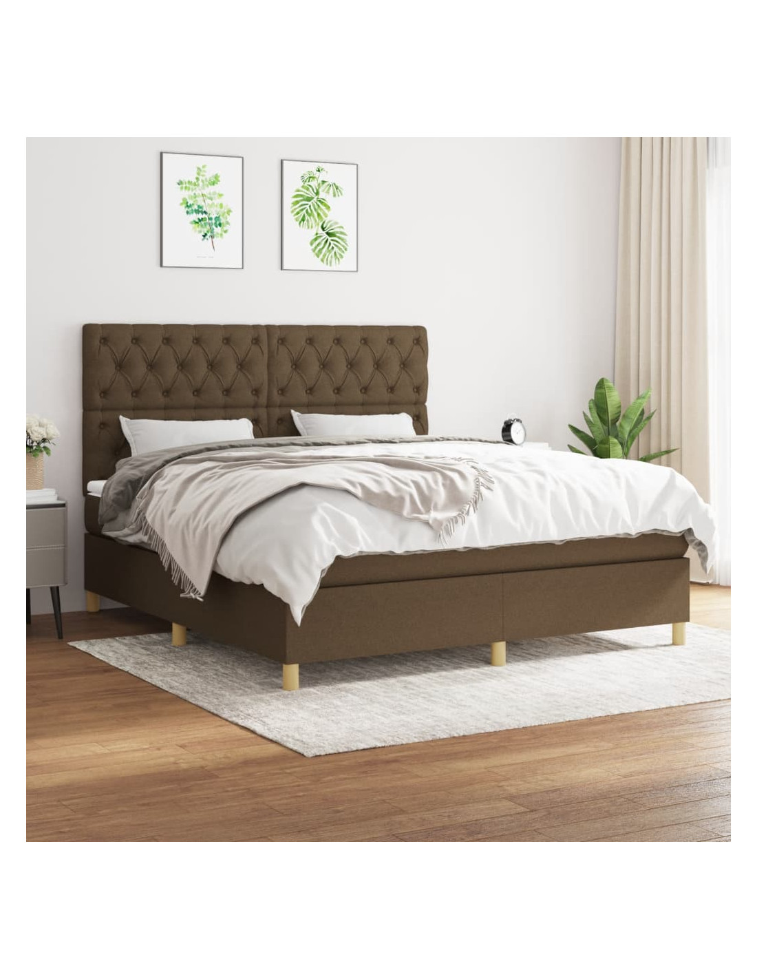 Giroletto a Molle con Materasso Marrone Scuro 160x200cm Tessuto