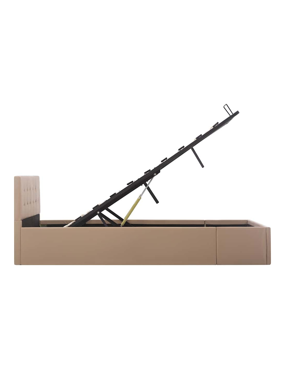 Questo giroletto trasforma lo spazio inutilizzato sotto il materasso in spazio di stoccaggio, con ampio spazio per riporre vestiti, lenzuola, coperte, ecc. Il meccanismo idraulico di sollevamento a gas rende il sollevamento del materasso estremamente facile. Il telaio a doghe rimarrà diritto una volta sollevato per lasciarvi entrambe le mani libere per prendere o mettere oggetti sotto il letto.