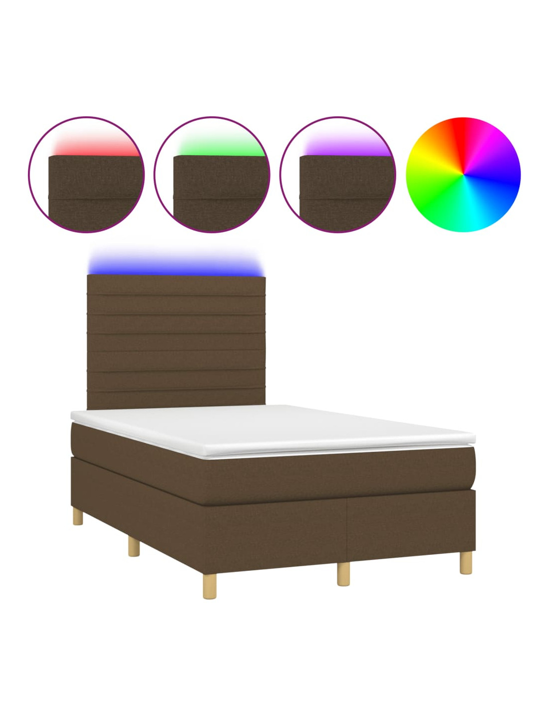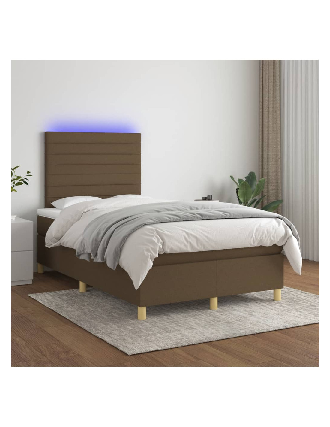 Letto a Molle Materasso e LED MarroneScuro 120x190cm in Tessuto