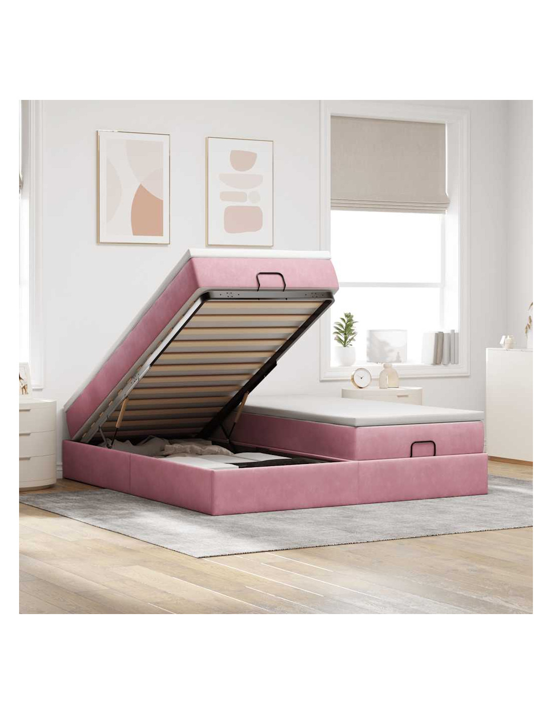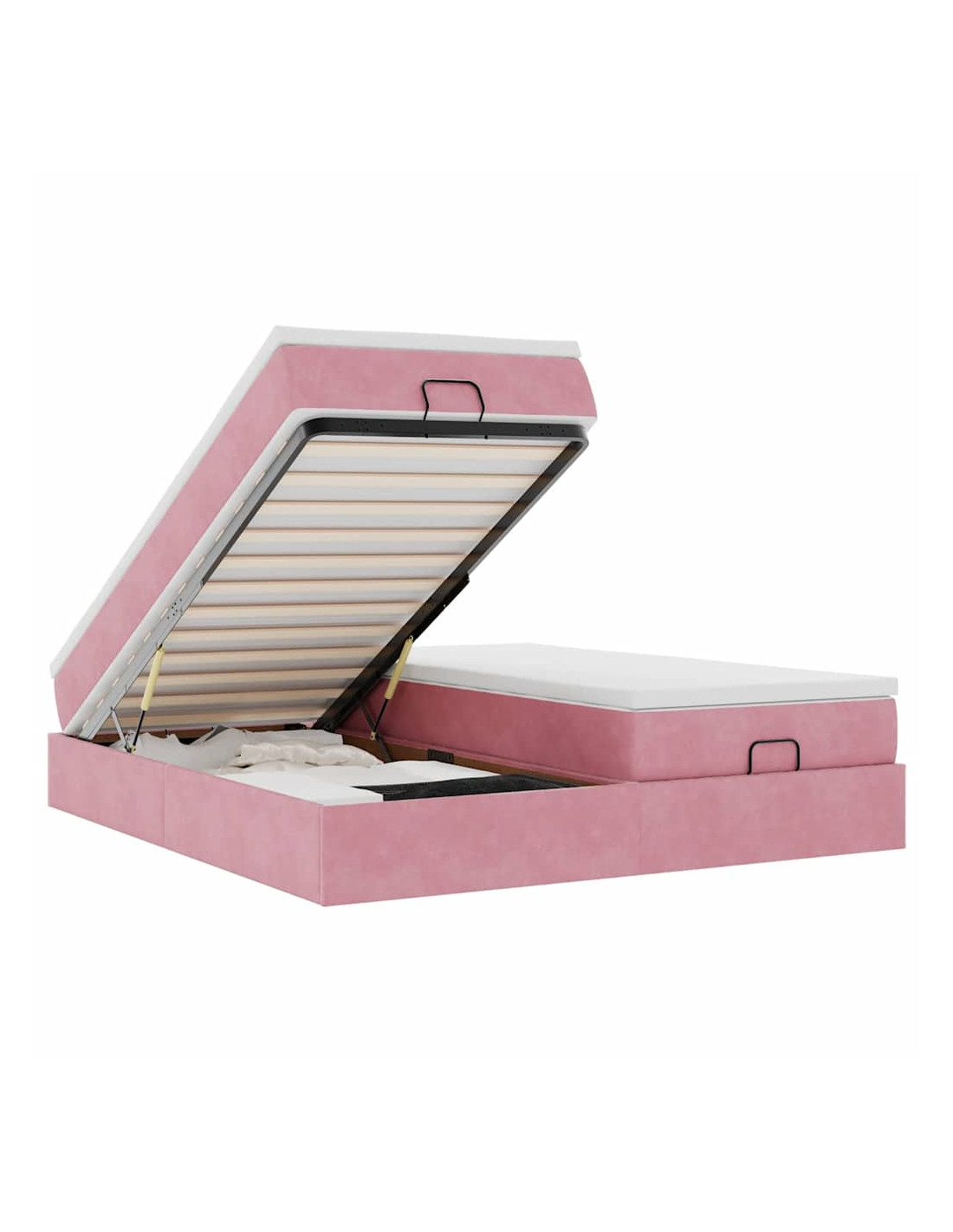 - Ampio vano portaoggetti sotto il letto: Grazie al meccanismo di sollevamento idraulico, il giroletto offre un ampio spazio sotto il letto, massimizzando lo spazio senza occupare ulteriore spazio sul pavimento. Con una semplice trazione della maniglia, la base a doghe si solleva dolcemente, permettendoti di recuperare i tuoi oggetti in modo rapido e senza sforzo.