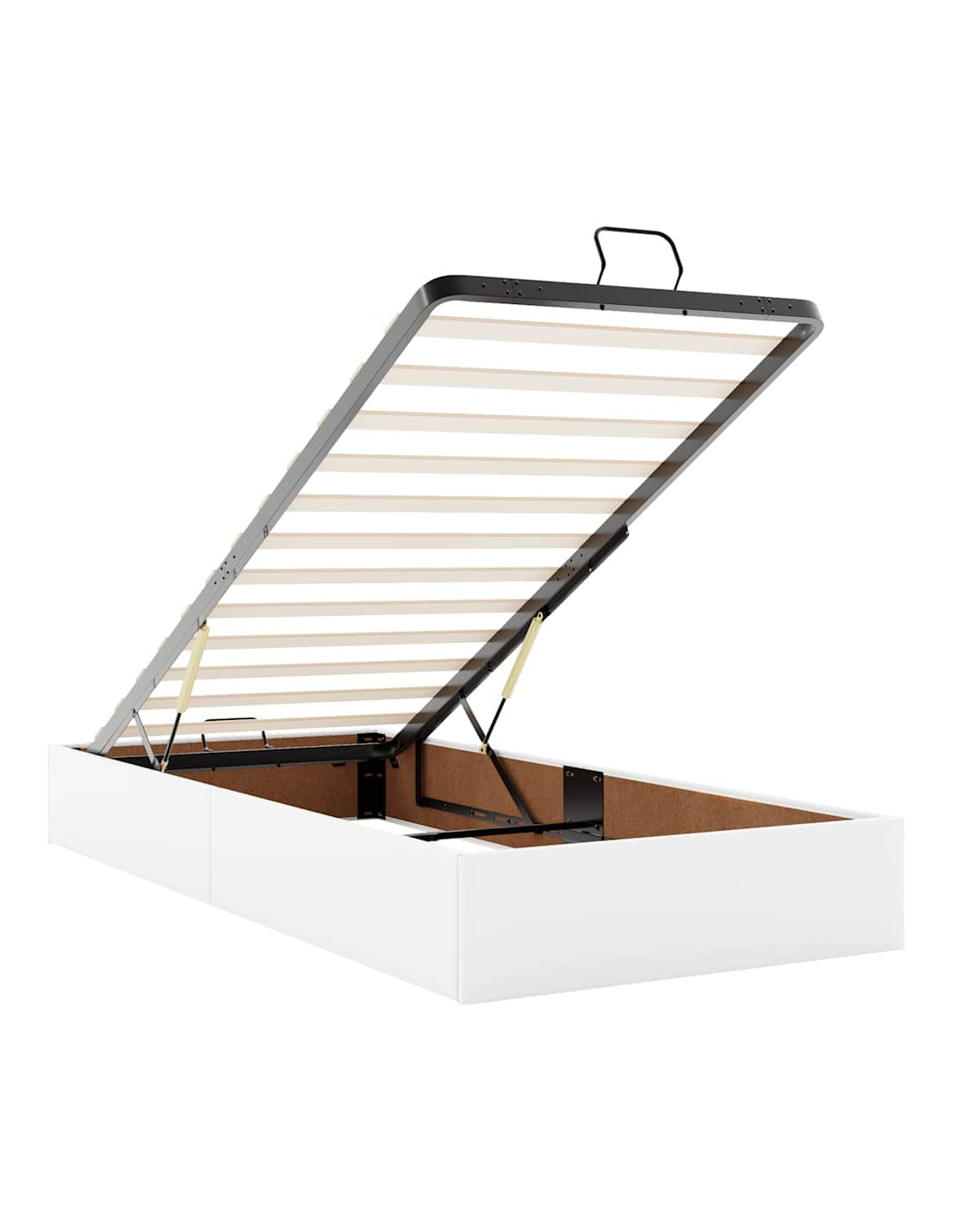 - Ampio vano portaoggetti sotto il letto: Grazie al meccanismo di sollevamento idraulico, il giroletto offre un ampio spazio sotto il letto, massimizzando lo spazio senza occupare ulteriore spazio sul pavimento. Con una semplice trazione della maniglia, la base a doghe si solleva dolcemente, permettendoti di recuperare i tuoi oggetti in modo rapido e senza sforzo.