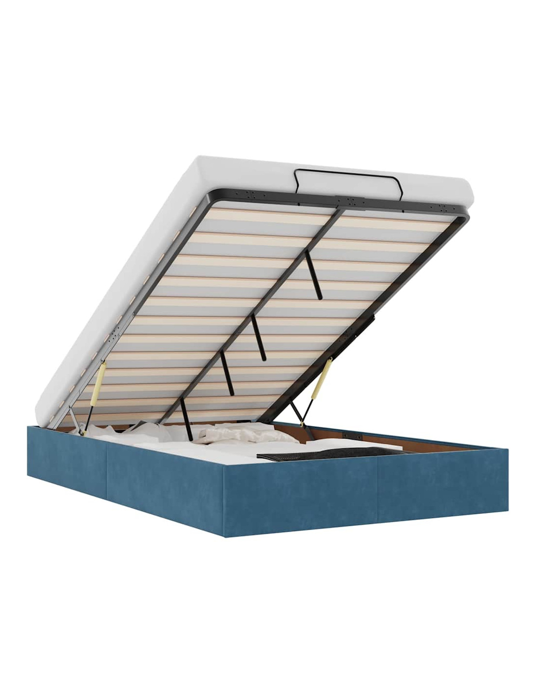 - Comodo meccanismo di sollevamento: Il meccanismo di sollevamento idraulico integrato consente un facile accesso agli effetti personali riposti sotto il letto. Con una semplice trazione della maniglia, la base a doghe si solleva dolcemente, permettendoti di recuperare i tuoi oggetti in modo rapido e senza sforzo.