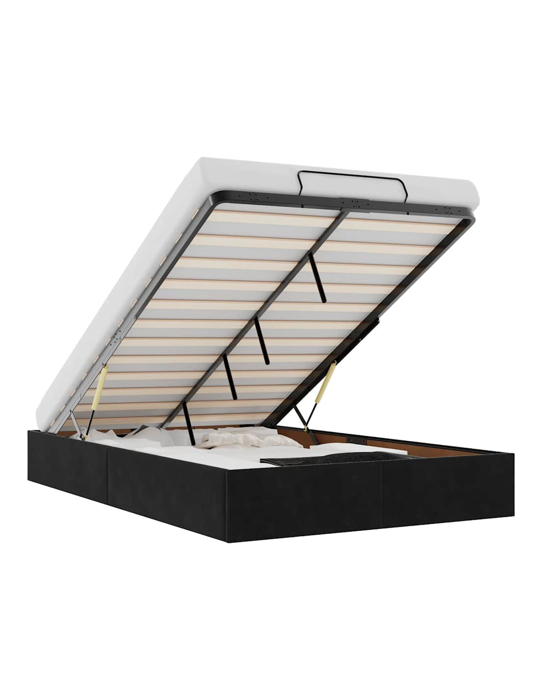 - Comodo meccanismo di sollevamento: Il meccanismo di sollevamento idraulico integrato consente un facile accesso agli effetti personali riposti sotto il letto. Con una semplice trazione della maniglia, la base a doghe si solleva dolcemente, permettendoti di recuperare i tuoi oggetti in modo rapido e senza sforzo.