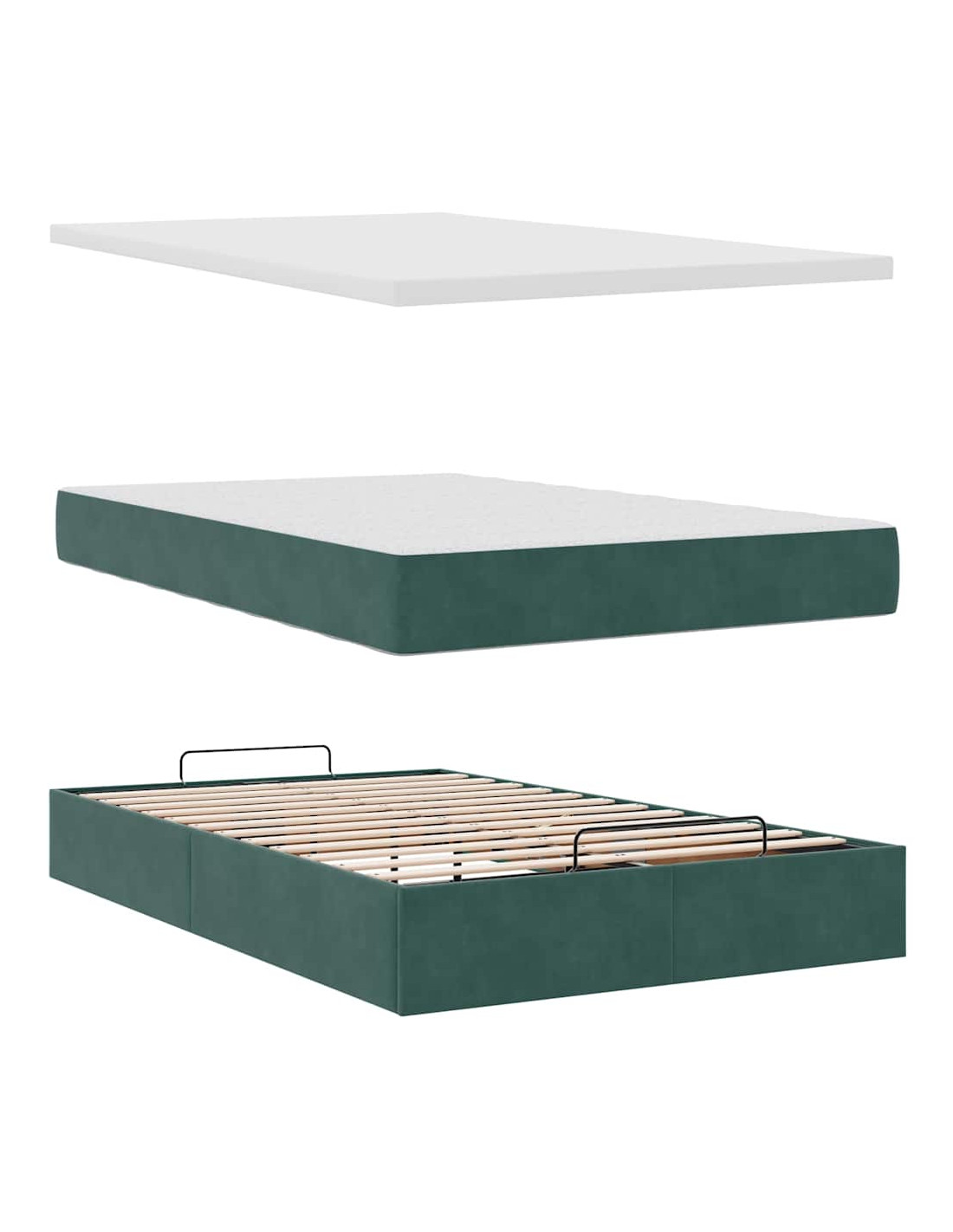- Ampio vano portaoggetti sotto il letto: Grazie al meccanismo di sollevamento idraulico, il giroletto offre un ampio spazio sotto il letto, massimizzando lo spazio senza occupare ulteriore spazio sul pavimento. Con una semplice trazione della maniglia, la base a doghe si solleva dolcemente, permettendoti di recuperare i tuoi oggetti in modo rapido e senza sforzo.