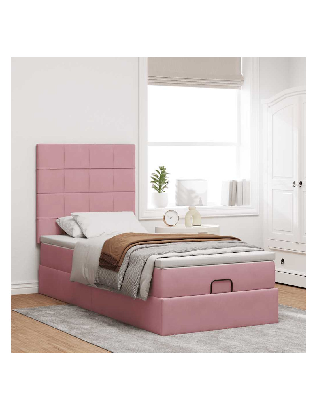 Struttura Letto Pouf con Materassi Rosa 100x200 cm Velluto