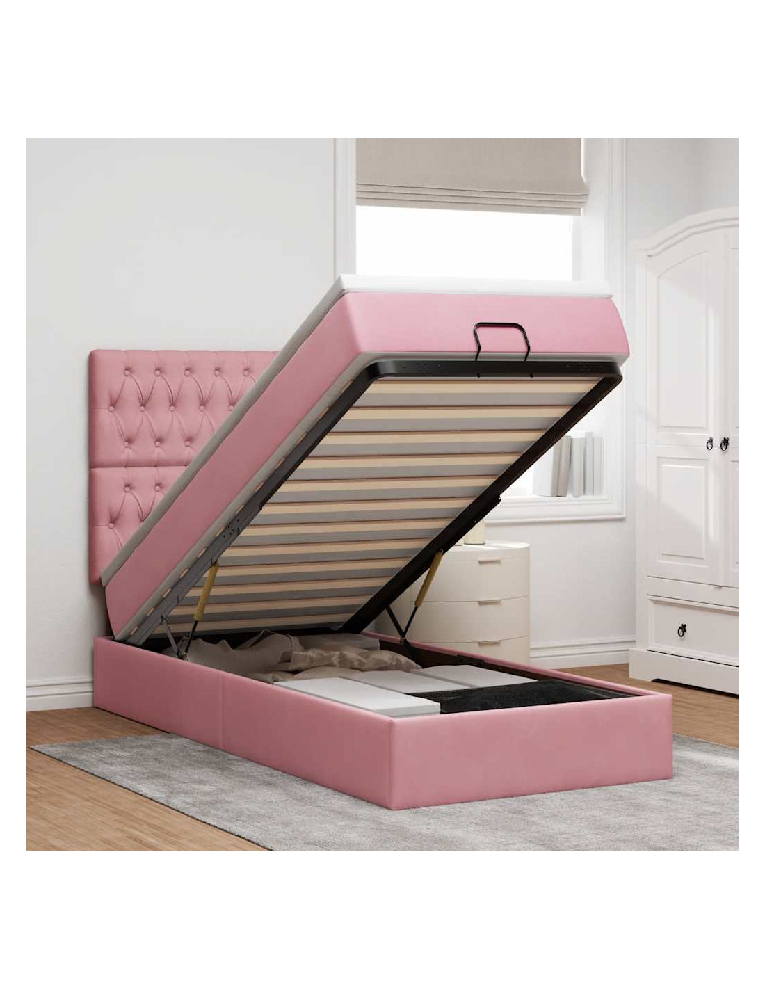 Struttura Letto Pouf con Materassi Rosa 80x200 cm Velluto