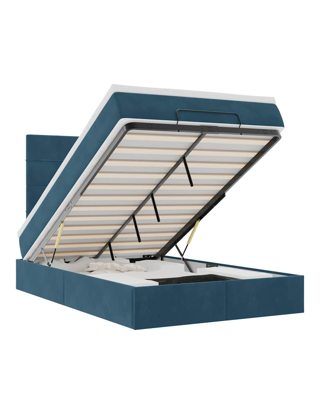 • Ampio vano portaoggetti sotto il letto: Grazie al meccanismo di sollevamento idraulico, il giroletto offre un ampio spazio sotto il letto, massimizzando lo spazio senza occupare ulteriore spazio sul pavimento. Con una semplice trazione della maniglia, la base a doghe si solleva dolcemente, permettendoti di recuperare i tuoi oggetti in modo rapido e senza sforzo.
