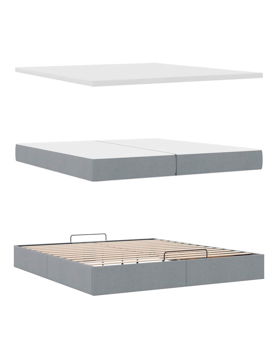 • Ampio vano portaoggetti sotto il letto: Grazie al meccanismo di sollevamento idraulico, il giroletto offre un ampio spazio sotto il letto, massimizzando lo spazio senza occupare ulteriore spazio sul pavimento. Con una semplice trazione della maniglia, la base a doghe si solleva dolcemente, permettendoti di recuperare i tuoi oggetti in modo rapido e senza sforzo.