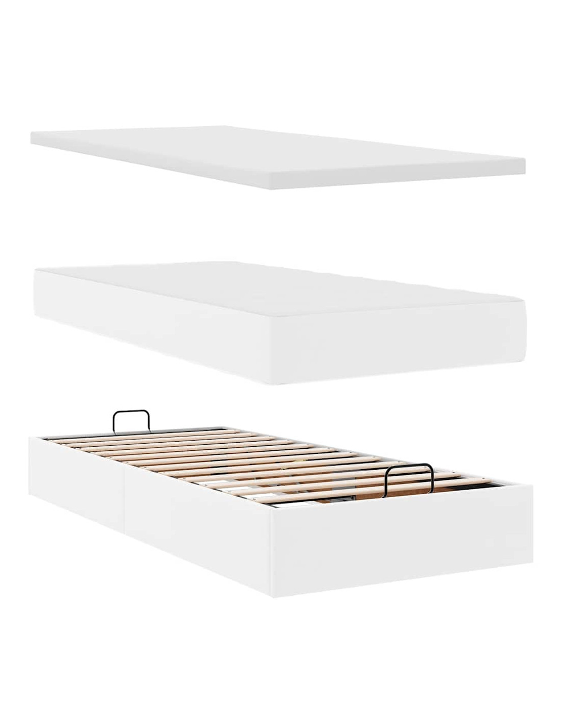 - Ampio vano portaoggetti sotto il letto: Grazie al meccanismo di sollevamento idraulico, il giroletto offre un ampio spazio sotto il letto, massimizzando lo spazio senza occupare ulteriore spazio sul pavimento. Con una semplice trazione della maniglia, la base a doghe si solleva dolcemente, permettendoti di recuperare i tuoi oggetti in modo rapido e senza sforzo.