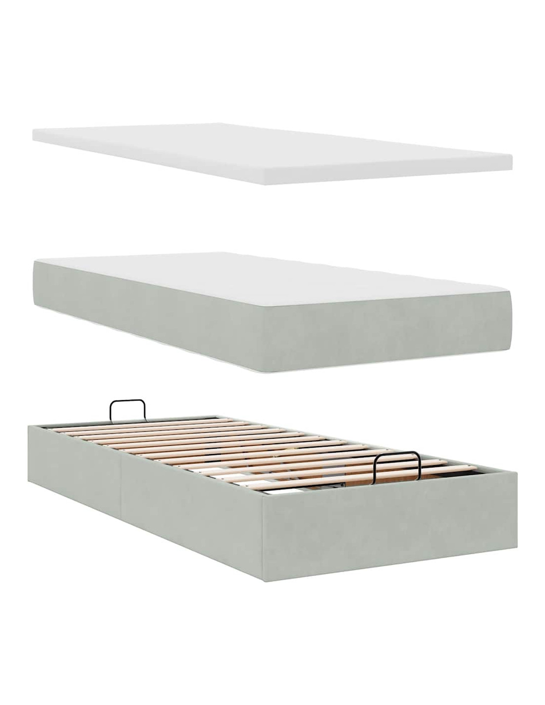 - Ampio vano portaoggetti sotto il letto: Grazie al meccanismo di sollevamento idraulico, il giroletto offre un ampio spazio sotto il letto, massimizzando lo spazio senza occupare ulteriore spazio sul pavimento. Con una semplice trazione della maniglia, la base a doghe si solleva dolcemente, permettendoti di recuperare i tuoi oggetti in modo rapido e senza sforzo.