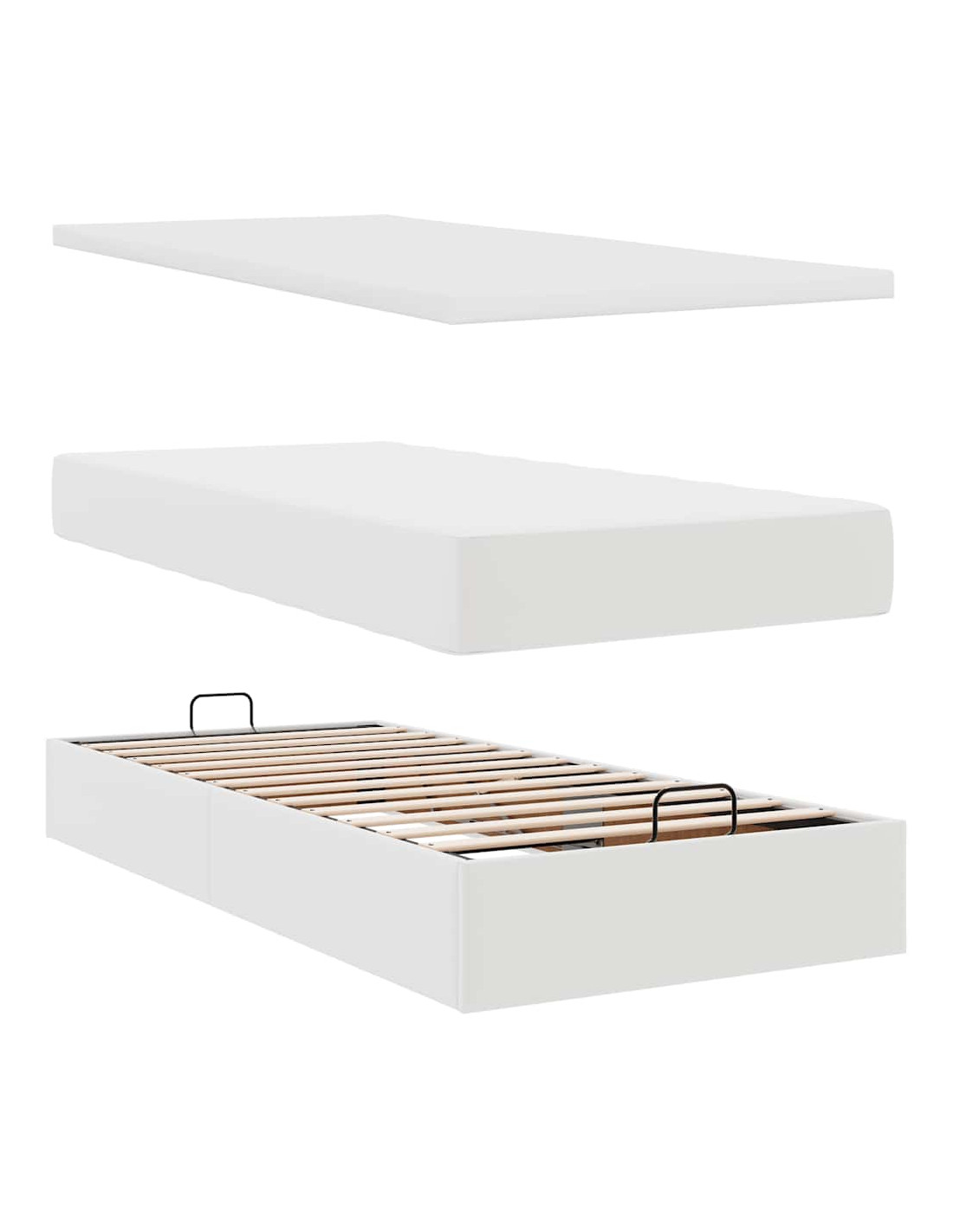 - Ampio vano portaoggetti sotto il letto: Grazie al meccanismo di sollevamento idraulico, il giroletto offre un ampio spazio sotto il letto, massimizzando lo spazio senza occupare ulteriore spazio sul pavimento. Con una semplice trazione della maniglia, la base a doghe si solleva dolcemente, permettendoti di recuperare i tuoi oggetti in modo rapido e senza sforzo.