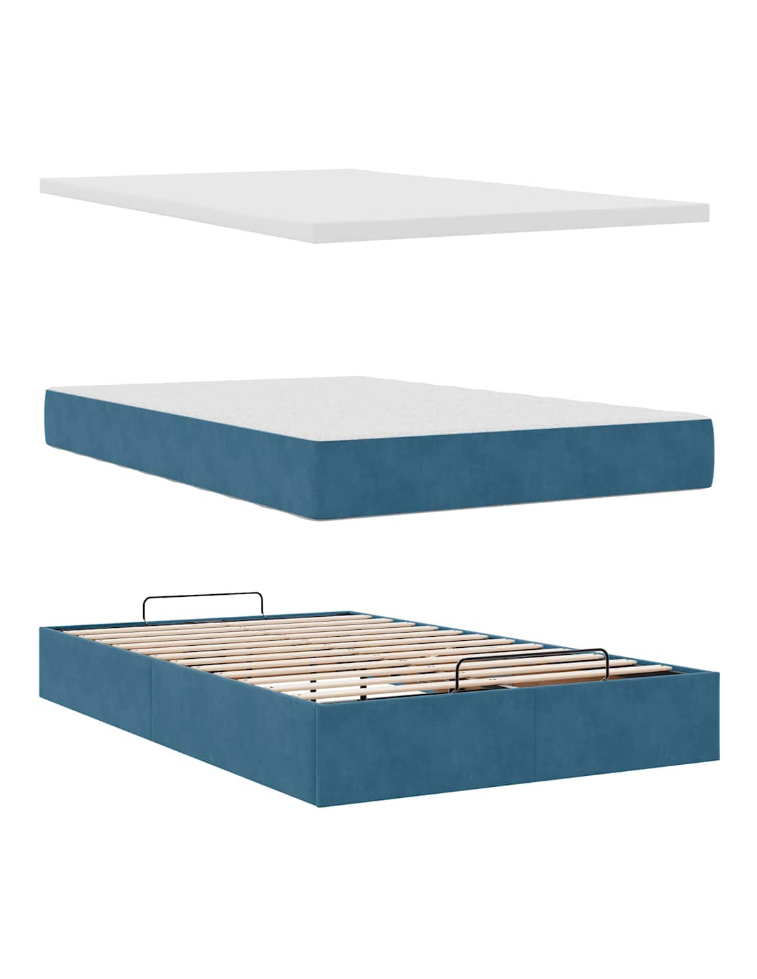 Struttura Letto Pouf con Materassi Blu Scuro 120x200 cm Velluto