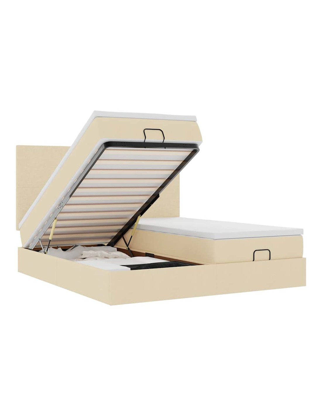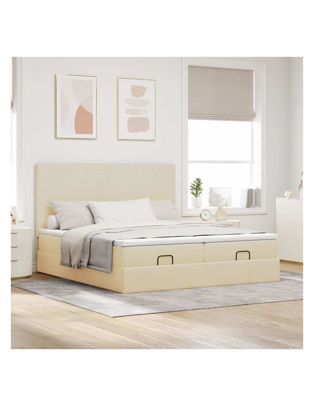 Struttura Letto Pouf con Materassi Crema 180x200 cm in Tessuto
