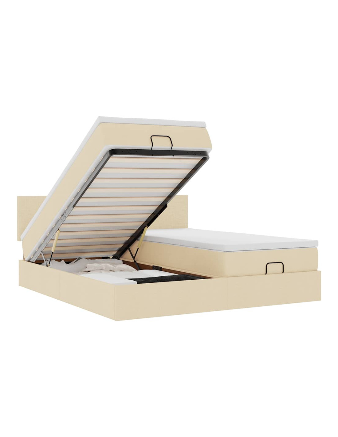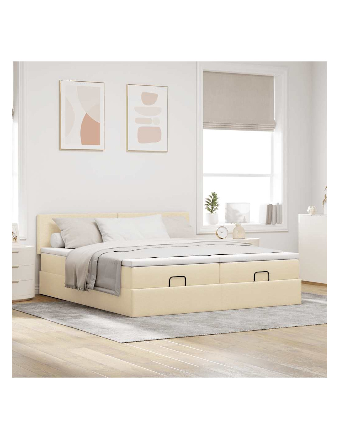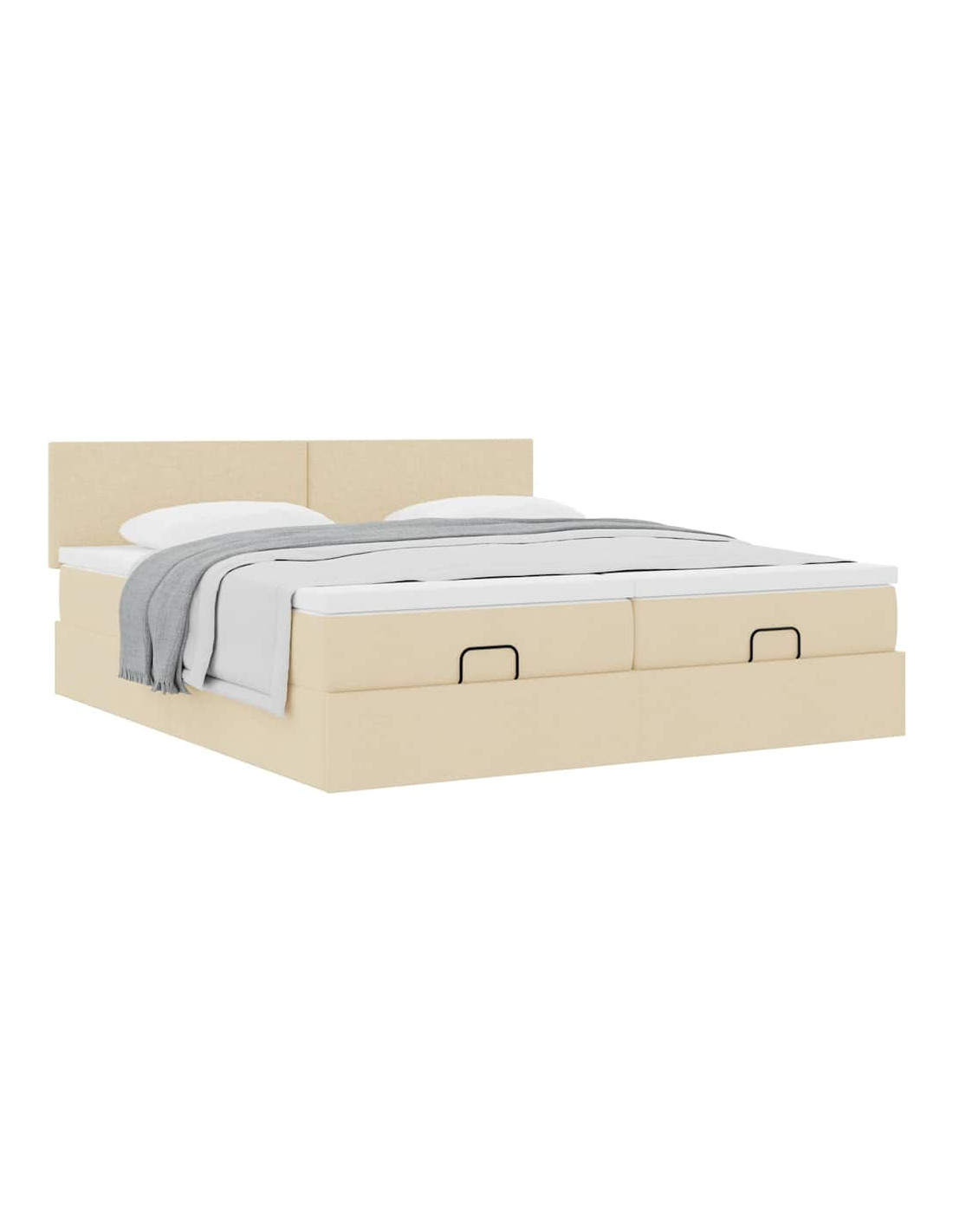 Struttura Letto Pouf con Materassi Crema 180x200 cm in Tessuto