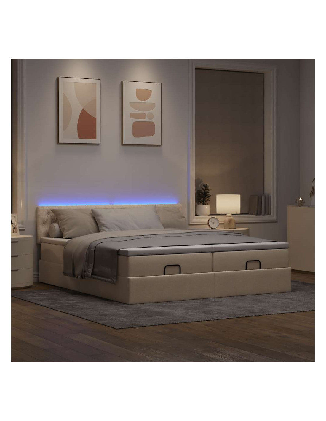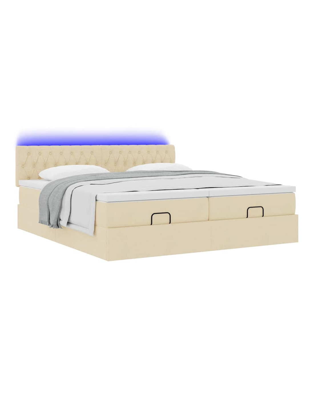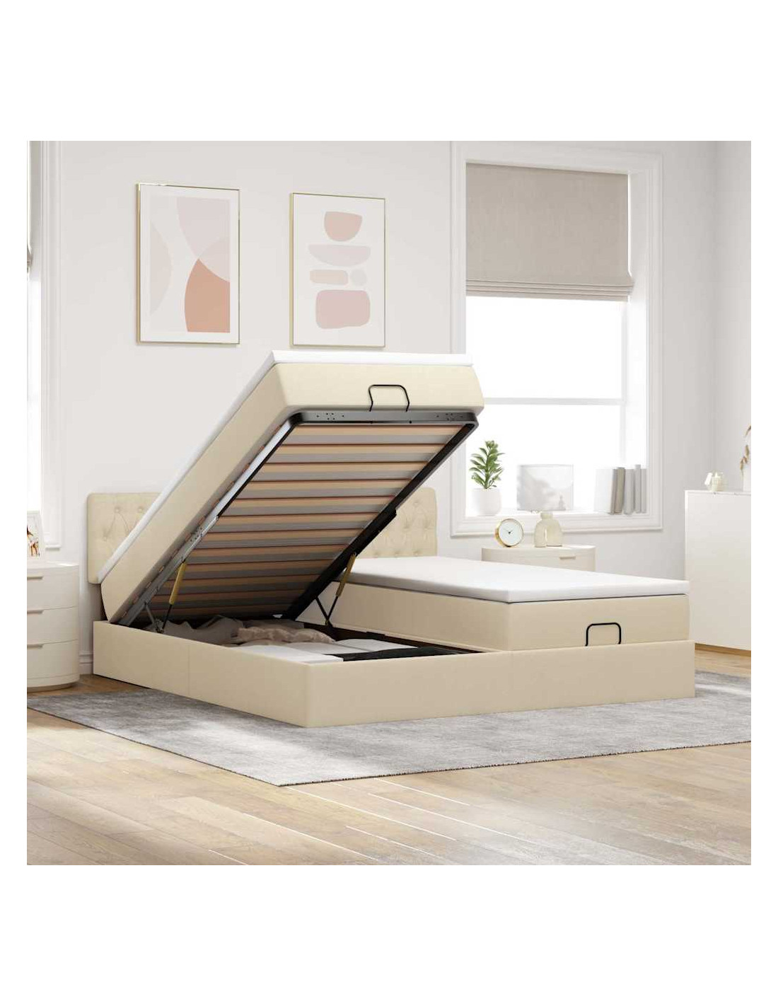 Struttura Letto Pouf con Materassi Crema 180x200 cm in Tessuto