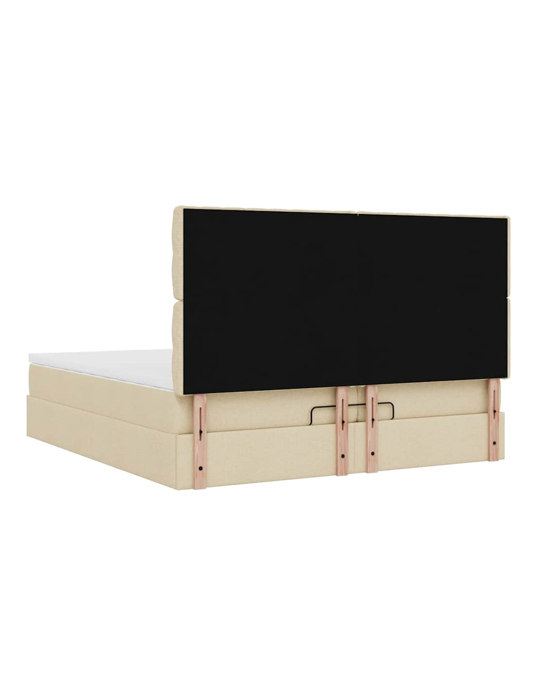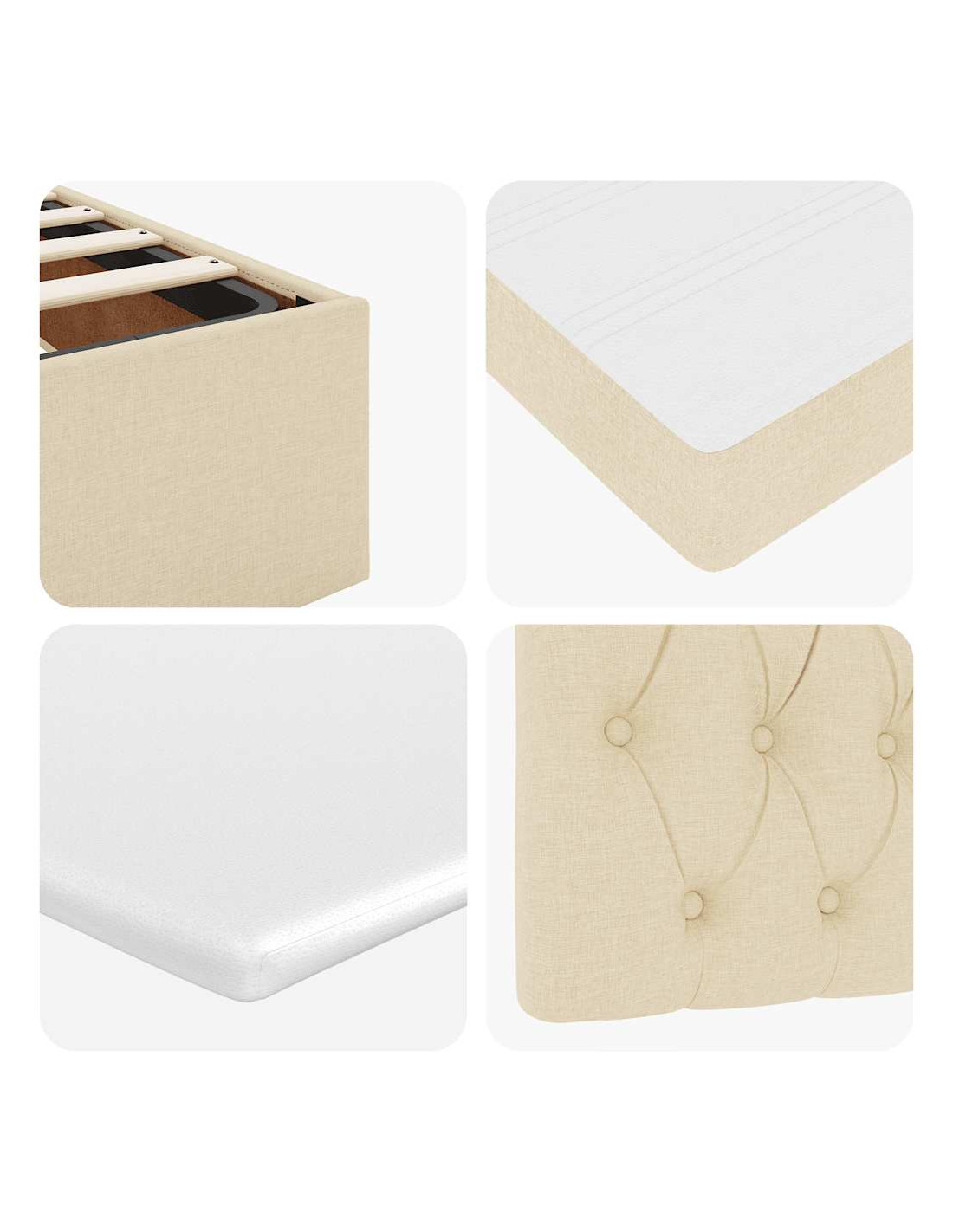 Struttura Letto Pouf con Materassi Crema 200x200 cm in Tessuto