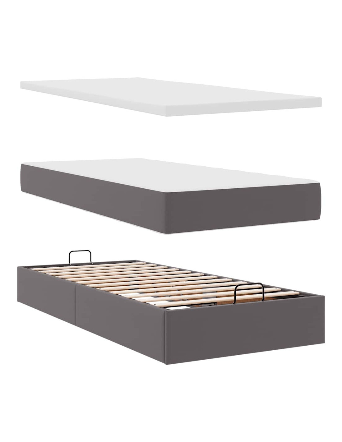 - Ampio vano portaoggetti sotto il letto: Grazie al meccanismo di sollevamento idraulico, il giroletto offre un ampio spazio sotto il letto, massimizzando lo spazio senza occupare ulteriore spazio sul pavimento. Con una semplice trazione della maniglia, la base a doghe si solleva dolcemente, permettendoti di recuperare i tuoi oggetti in modo rapido e senza sforzo.