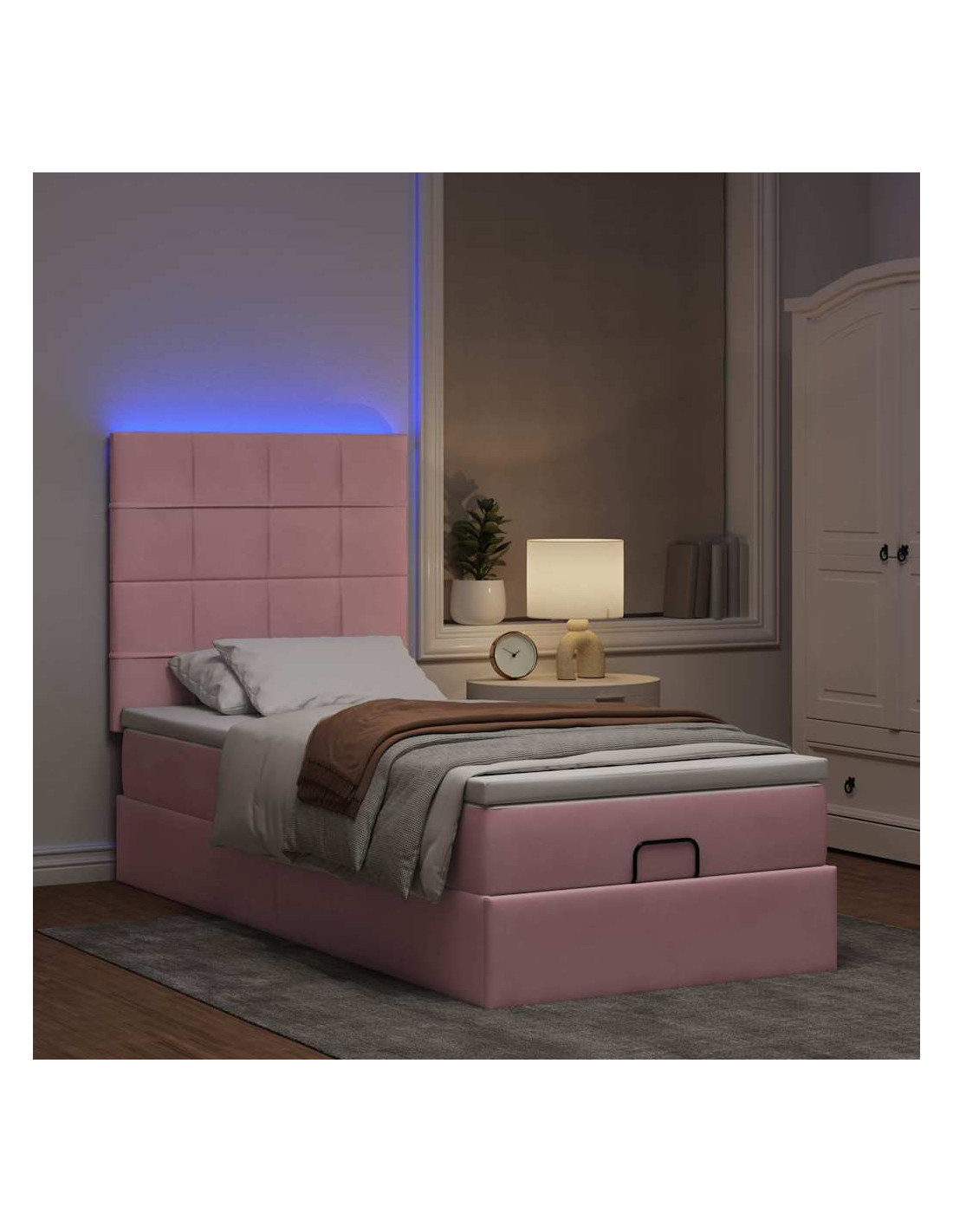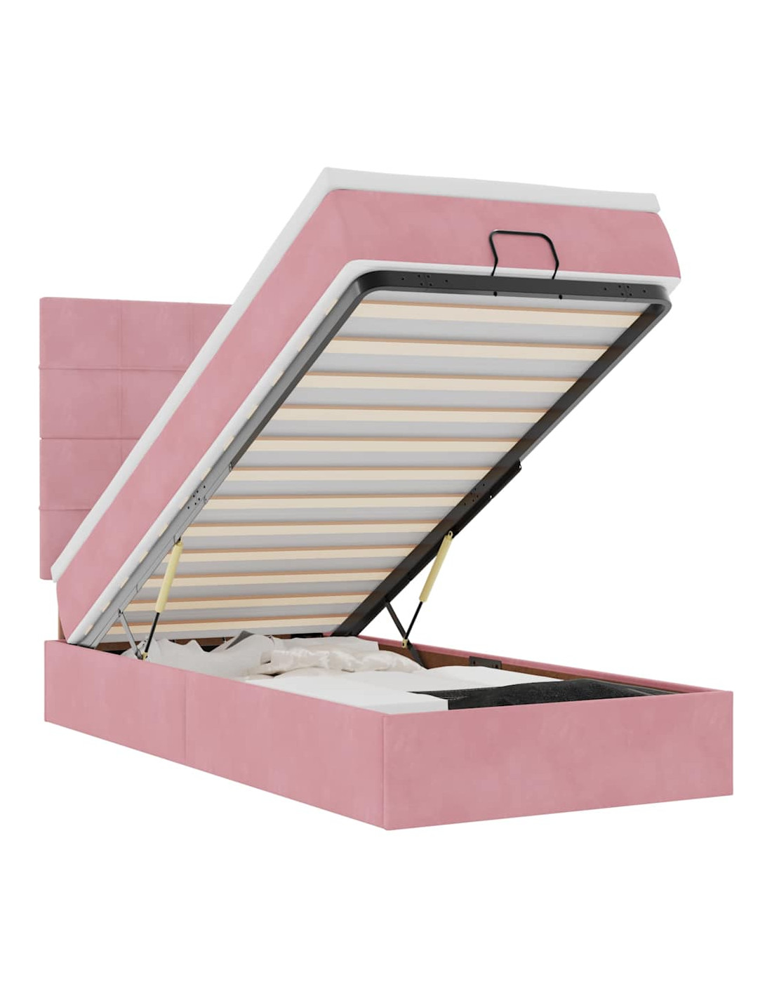 • Ampio vano portaoggetti sotto il letto: Grazie al meccanismo di sollevamento idraulico, il giroletto offre un ampio spazio sotto il letto, massimizzando lo spazio senza occupare ulteriore spazio sul pavimento. Con una semplice trazione della maniglia, la base a doghe si solleva dolcemente, permettendoti di recuperare i tuoi oggetti in modo rapido e senza sforzo.