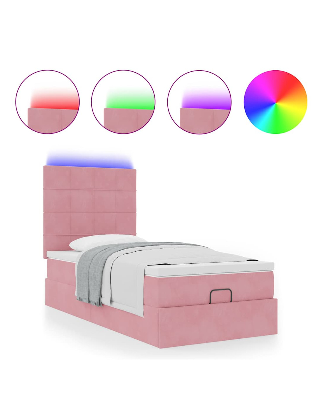 Struttura Letto Pouf con Materassi Rosa 100x200 cm Velluto