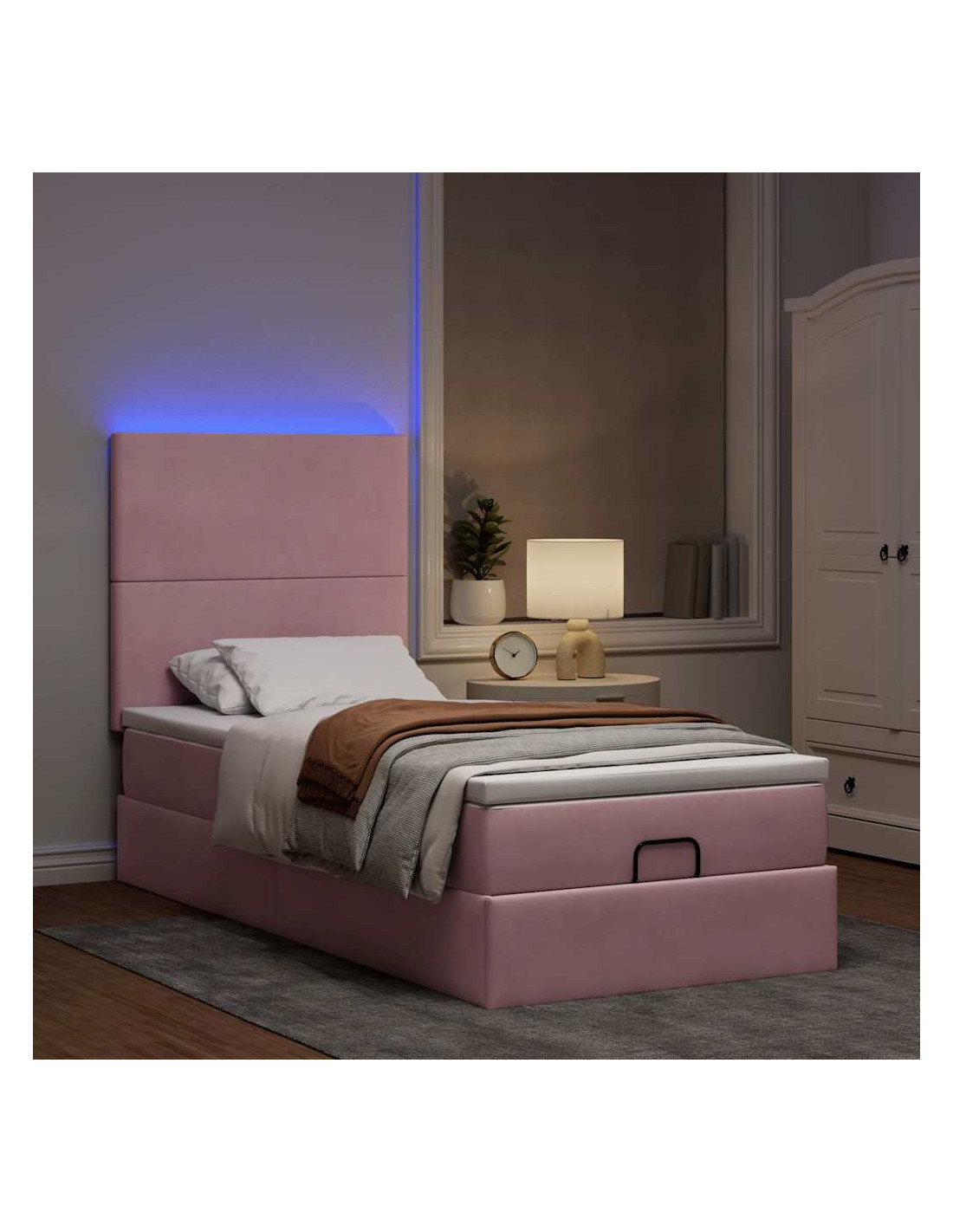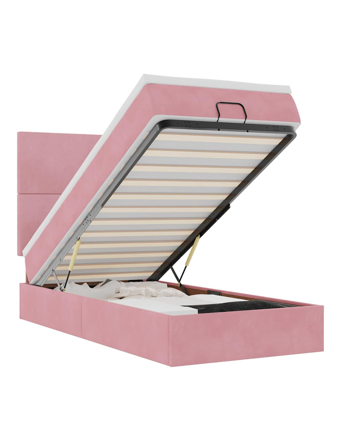 • Ampio vano portaoggetti sotto il letto: Grazie al meccanismo di sollevamento idraulico, il giroletto offre un ampio spazio sotto il letto, massimizzando lo spazio senza occupare ulteriore spazio sul pavimento. Con una semplice trazione della maniglia, la base a doghe si solleva dolcemente, permettendoti di recuperare i tuoi oggetti in modo rapido e senza sforzo.