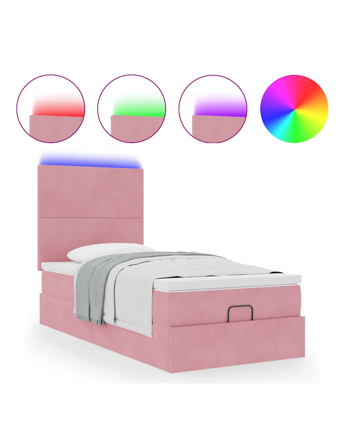 Struttura Letto Pouf con Materassi Rosa 100x200 cm Velluto