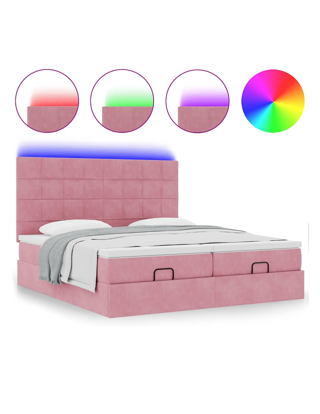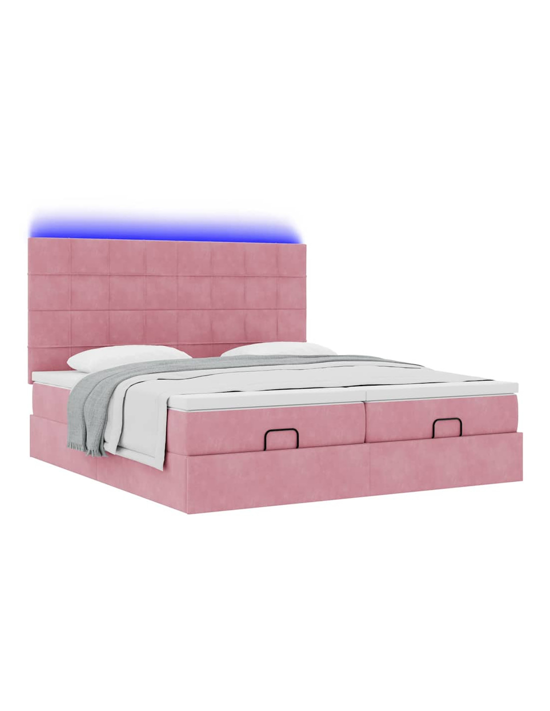 Struttura Letto Pouf con Materassi Rosa 160x200 cm Velluto