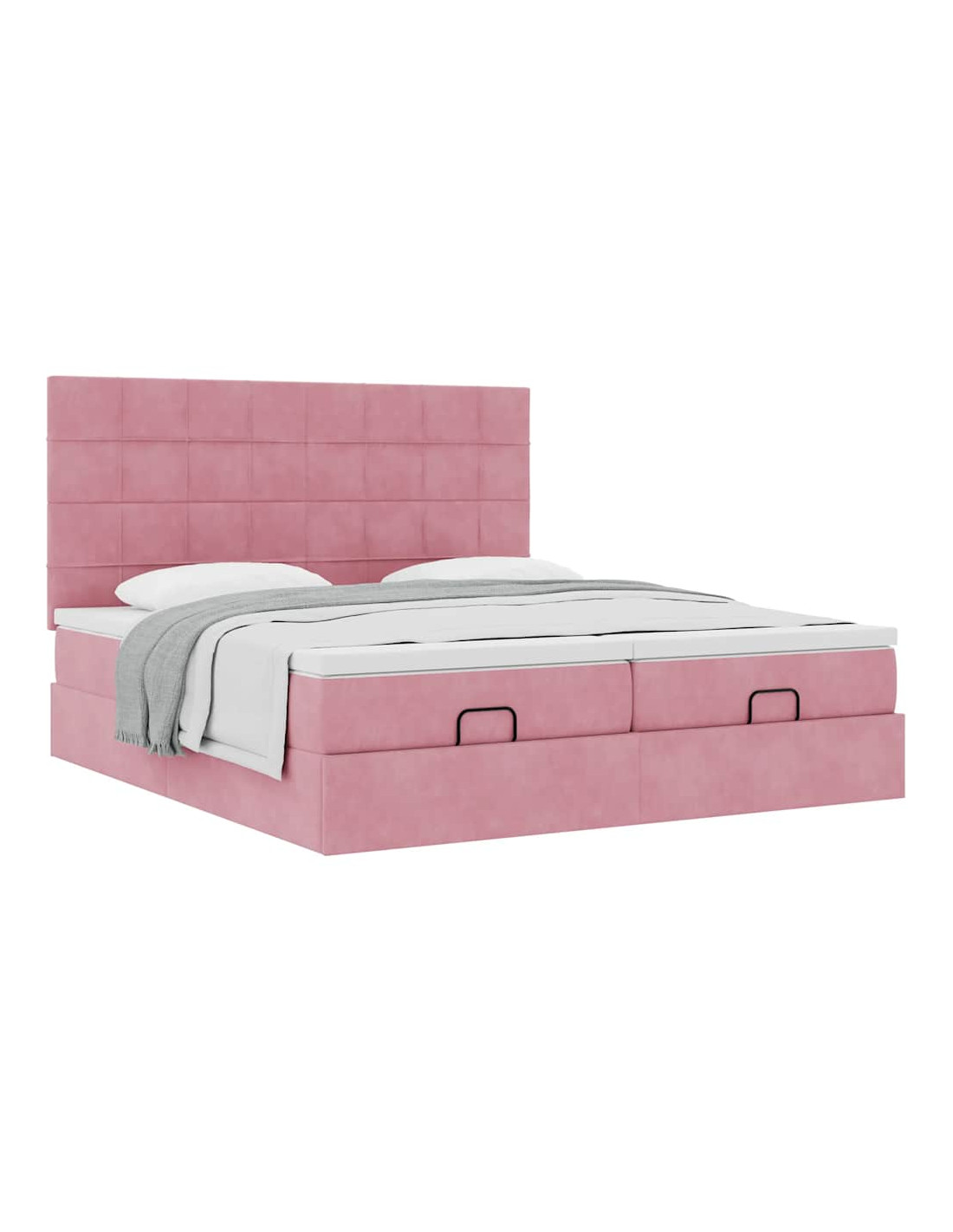 Struttura Letto Pouf con Materassi Rosa 160x200 cm Velluto