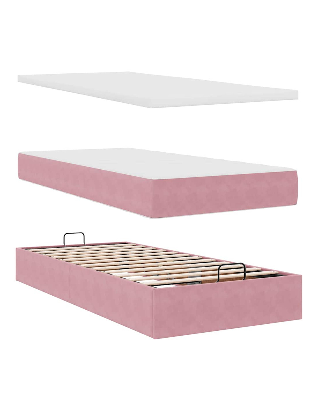 • Ampio vano portaoggetti sotto il letto: Grazie al meccanismo di sollevamento idraulico, il giroletto offre un ampio spazio sotto il letto, massimizzando lo spazio senza occupare ulteriore spazio sul pavimento. Con una semplice trazione della maniglia, la base a doghe si solleva dolcemente, permettendoti di recuperare i tuoi oggetti in modo rapido e senza sforzo.