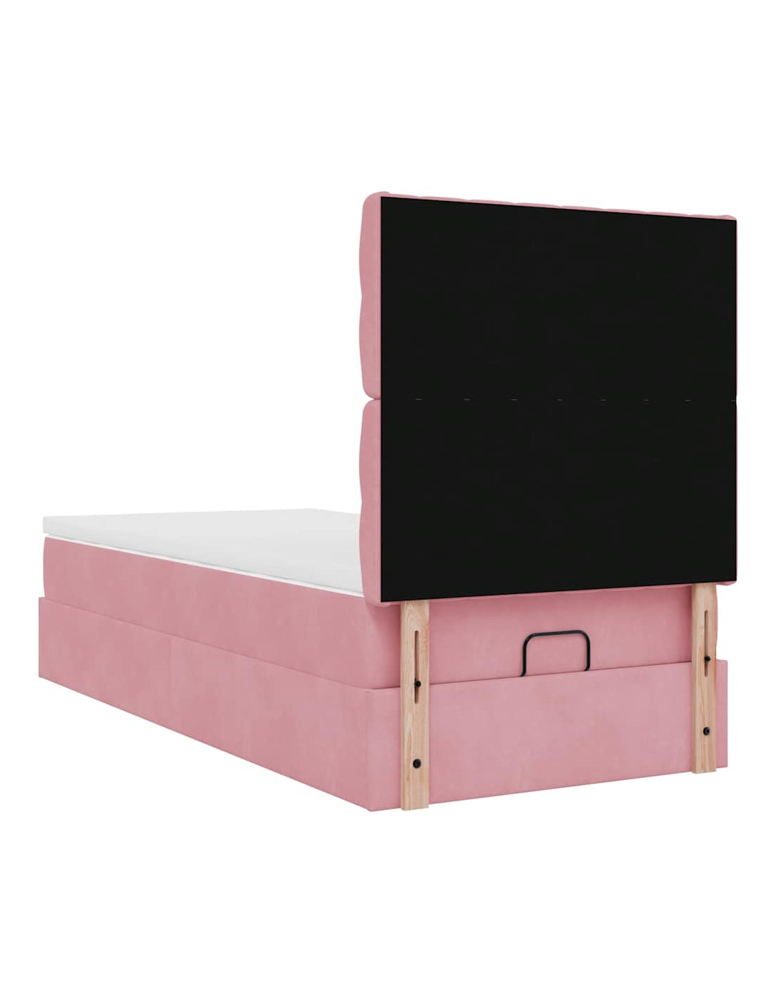 Struttura Letto Pouf con Materassi Rosa 90x190 cm in Velluto