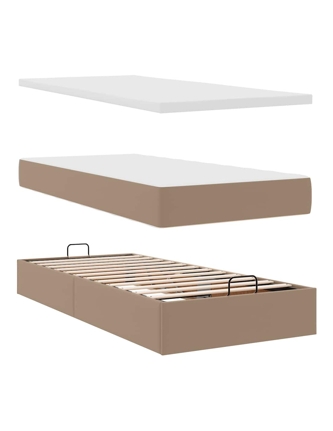 - Ampio vano portaoggetti sotto il letto: Grazie al meccanismo di sollevamento idraulico, il giroletto offre un ampio spazio sotto il letto, massimizzando lo spazio senza occupare ulteriore spazio sul pavimento. Con una semplice trazione della maniglia, la base a doghe si solleva dolcemente, permettendoti di recuperare i tuoi oggetti in modo rapido e senza sforzo.