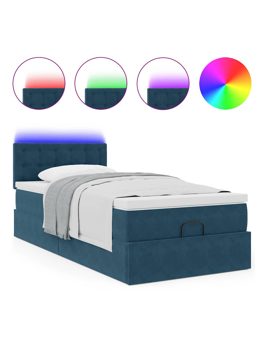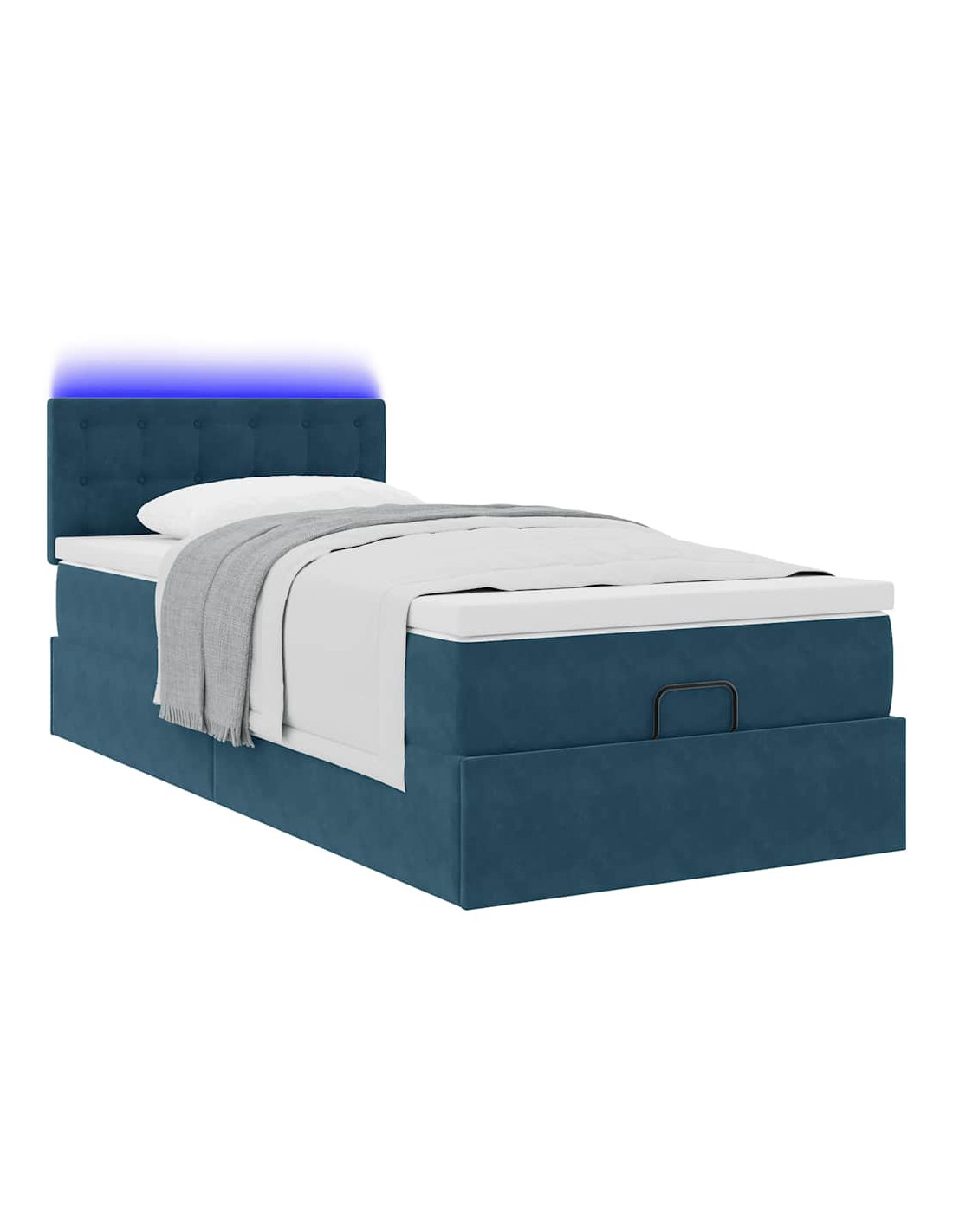 Pouf Letto con Materasso e LED Blu Scuro 80x200cm in Velluto