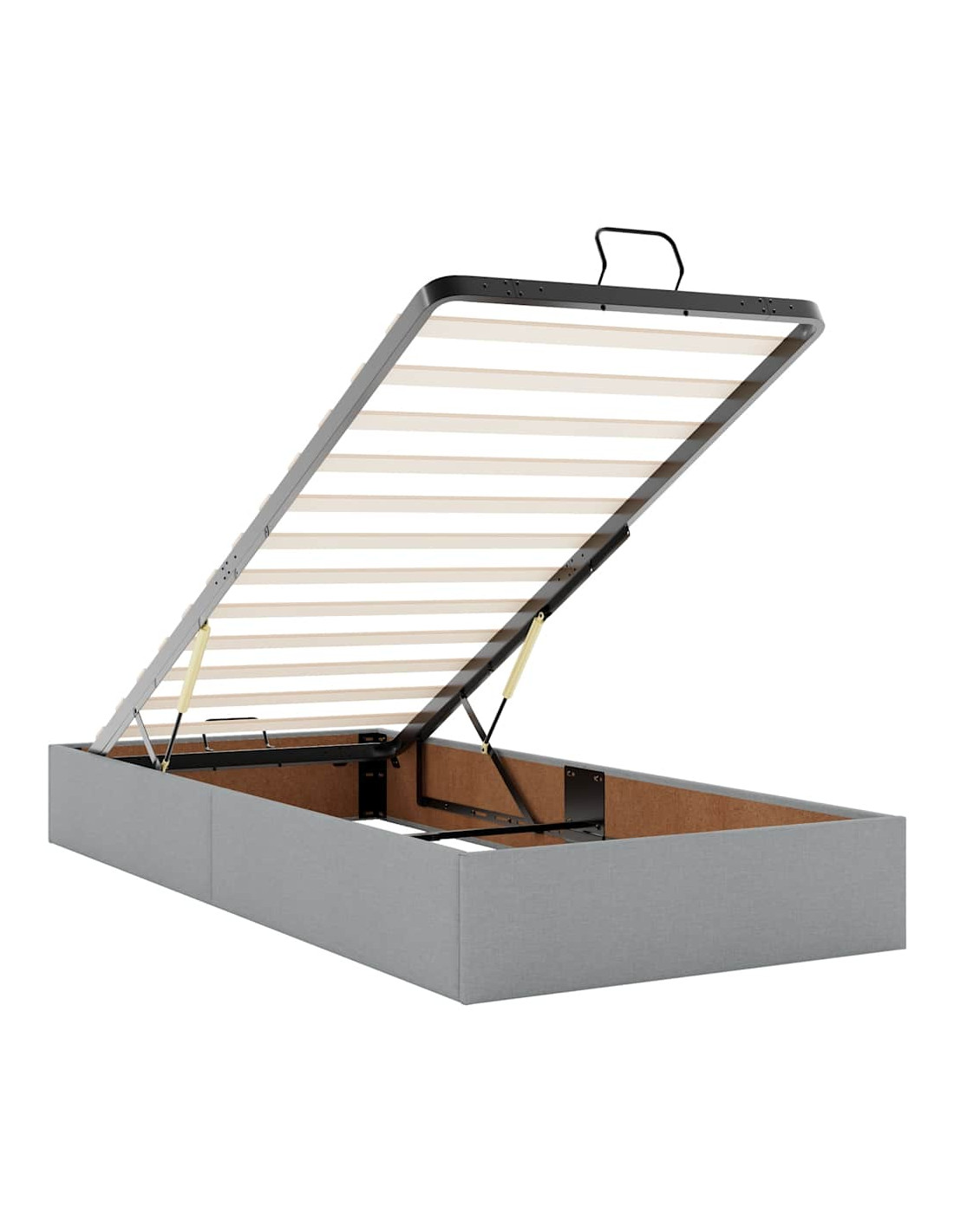 • Ampio vano portaoggetti sotto il letto: Grazie al meccanismo di sollevamento idraulico, il giroletto offre un ampio spazio sotto il letto, massimizzando lo spazio senza occupare ulteriore spazio sul pavimento. Con una semplice trazione della maniglia, la base a doghe si solleva dolcemente, permettendoti di recuperare i tuoi oggetti in modo rapido e senza sforzo.