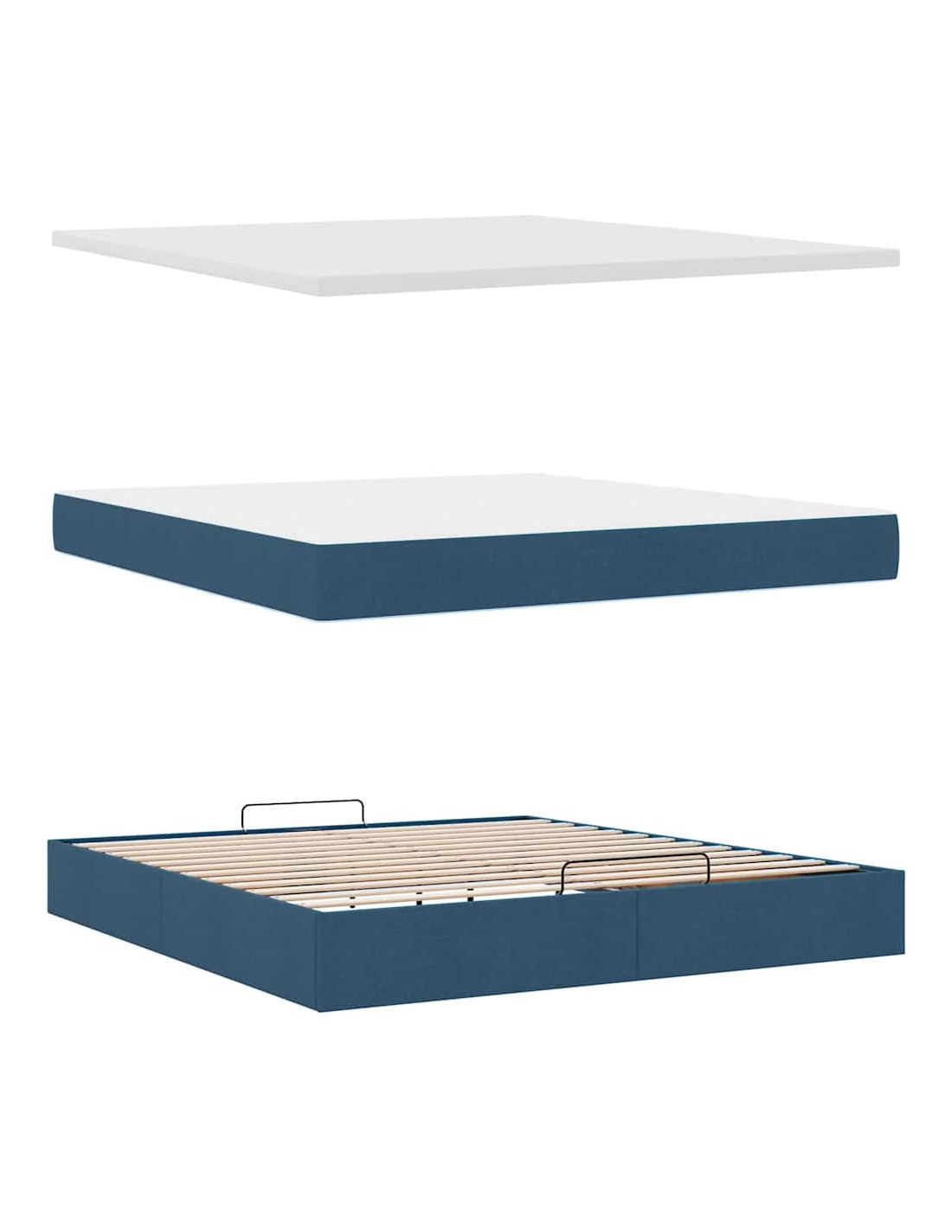 Struttura Letto Pouf con Materasso Blu 180x200cm in Tessuto