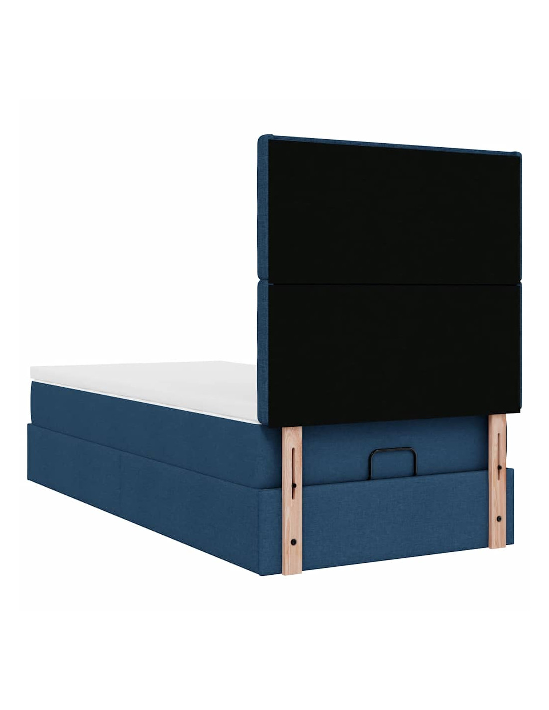 Struttura Letto Pouf con Materasso Blu 90x190 cm in Tessuto