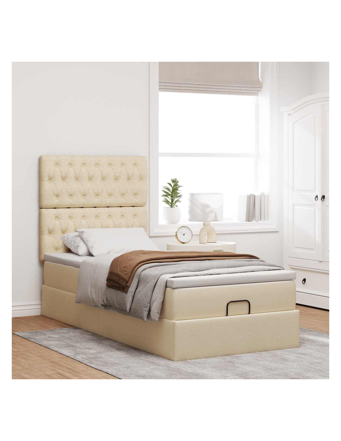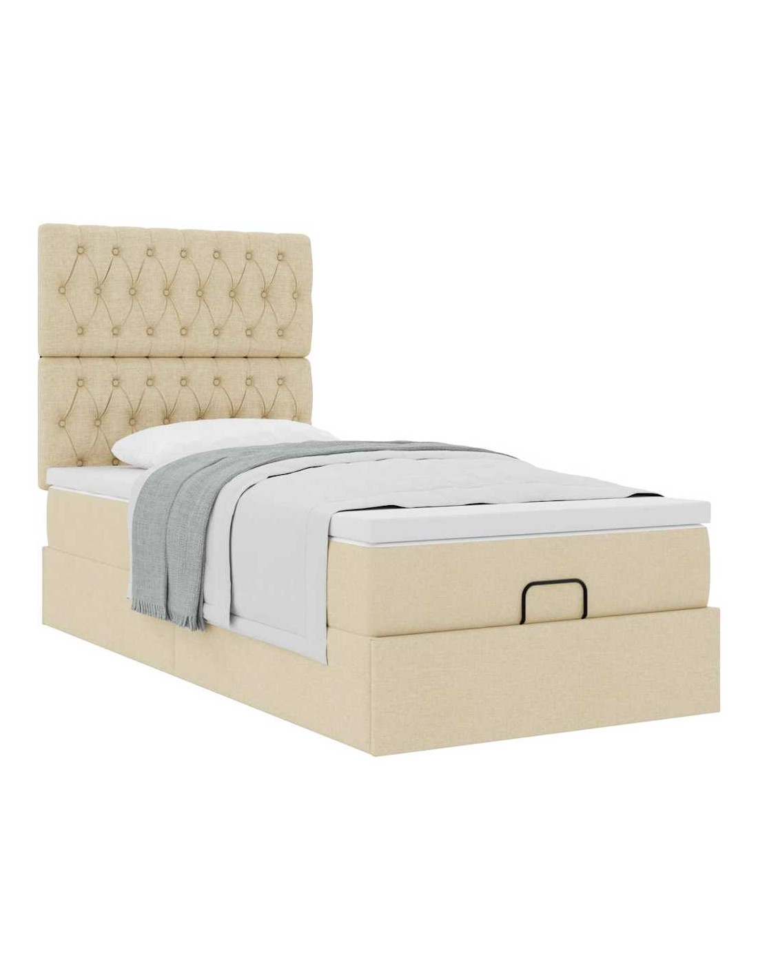 Struttura Letto Pouf con Materasso Crema 90x190 cm in Tessuto